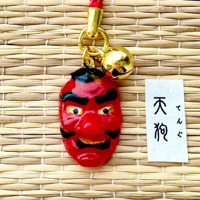 こちらはミニチュア天狗面の根付です。 ○+200円で帯飾り仕上げも可能です。 ご希望される方はオプションで 「帯飾りプレート」をお選びください。 面は横顔も楽しんでいただけるよう、 高い鼻や小鼻、頬や顎のラインの凹凸など立体感を出しました。 金色の前歯なども全て細い筆で手描きしております。 表面もハードレジンでコーティングしておりますので、つやっとした質感です。 ◆大きさ◆ お面 縦 約2.3cm 横 約1.5cm 〇お写真はイメージです。 一つ一つ手作りのため、表情や色合いなどに個体差がございます。 全く同じものは一つとして存在しない、ハンドメイドならではの良さと受け止めてくださると幸いです。