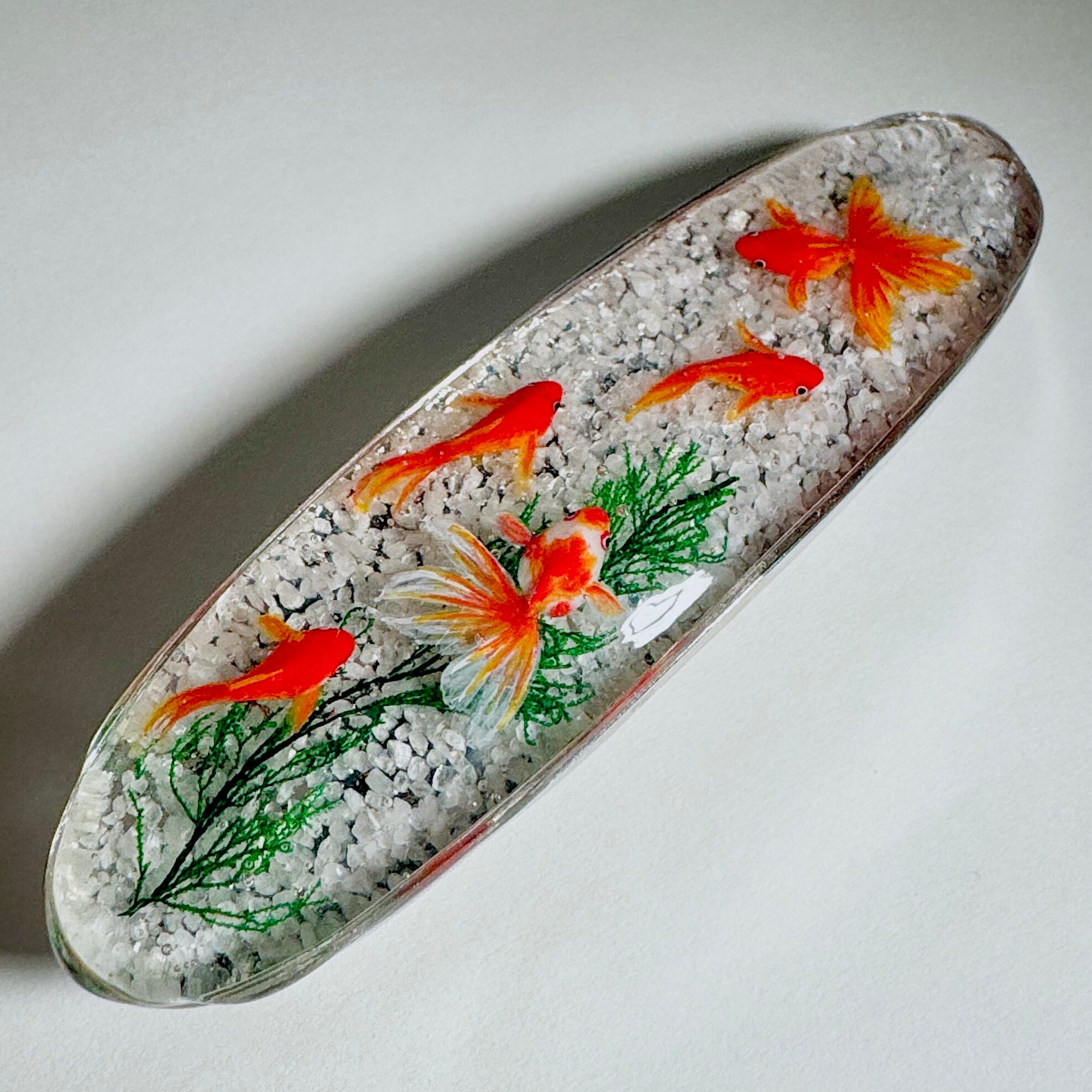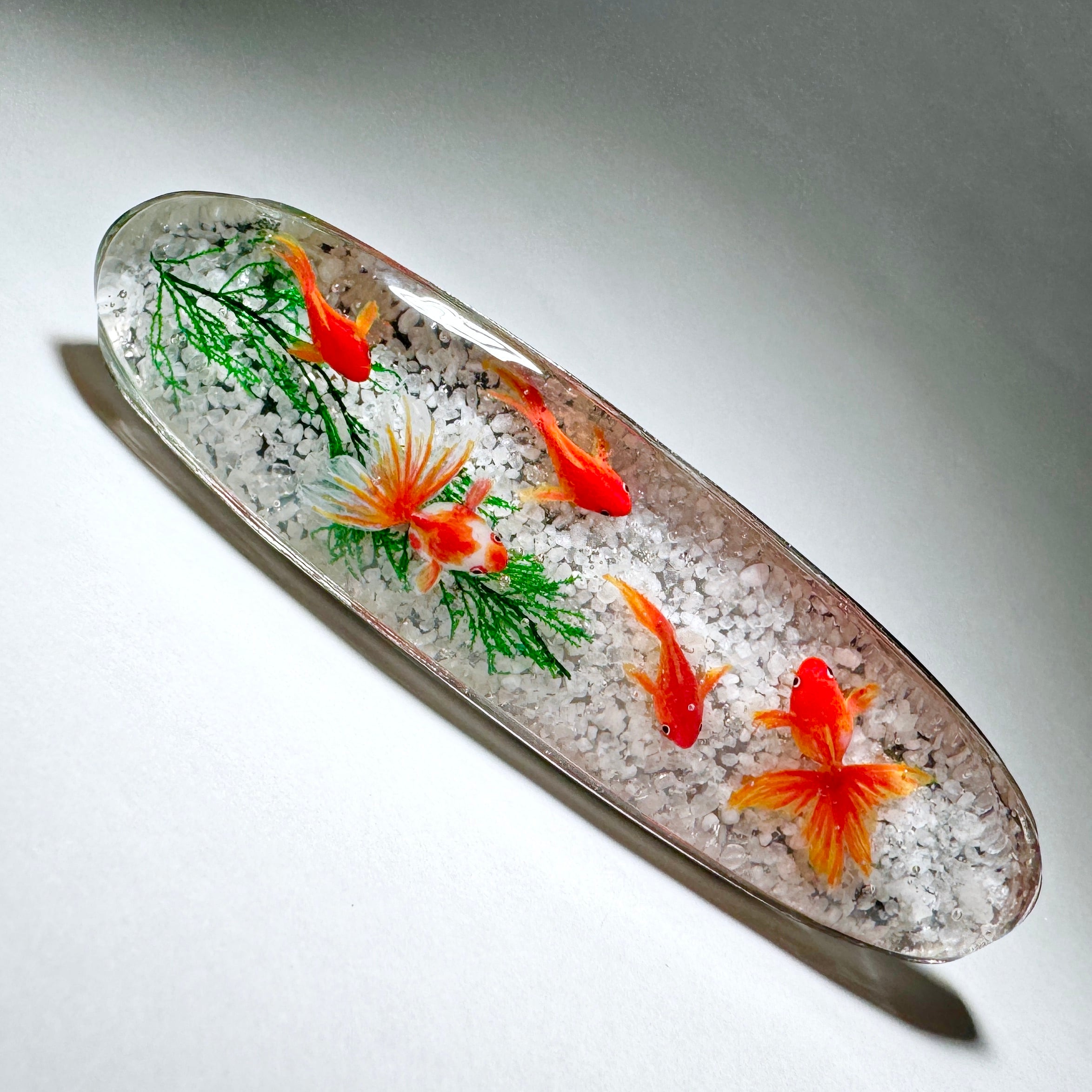 こちらは金魚が泳ぐバレッタです。