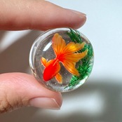 金魚も一匹ずつ型を使わずに造形し、小さな目をつけ、ヒレを描いておりますので、体の大きさやお顔や模様などお写真と若干異なります。