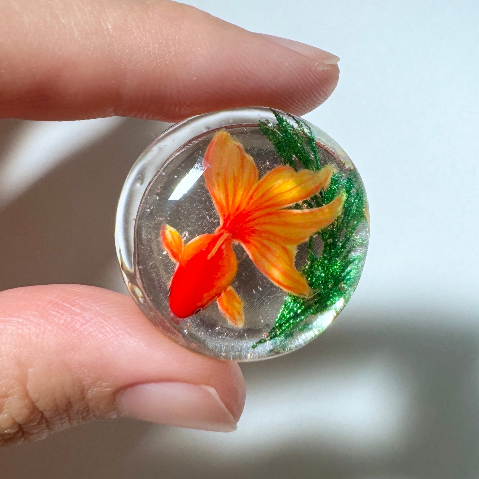 こちらはつるんとした透明感にこだわった琉金モチーフです。