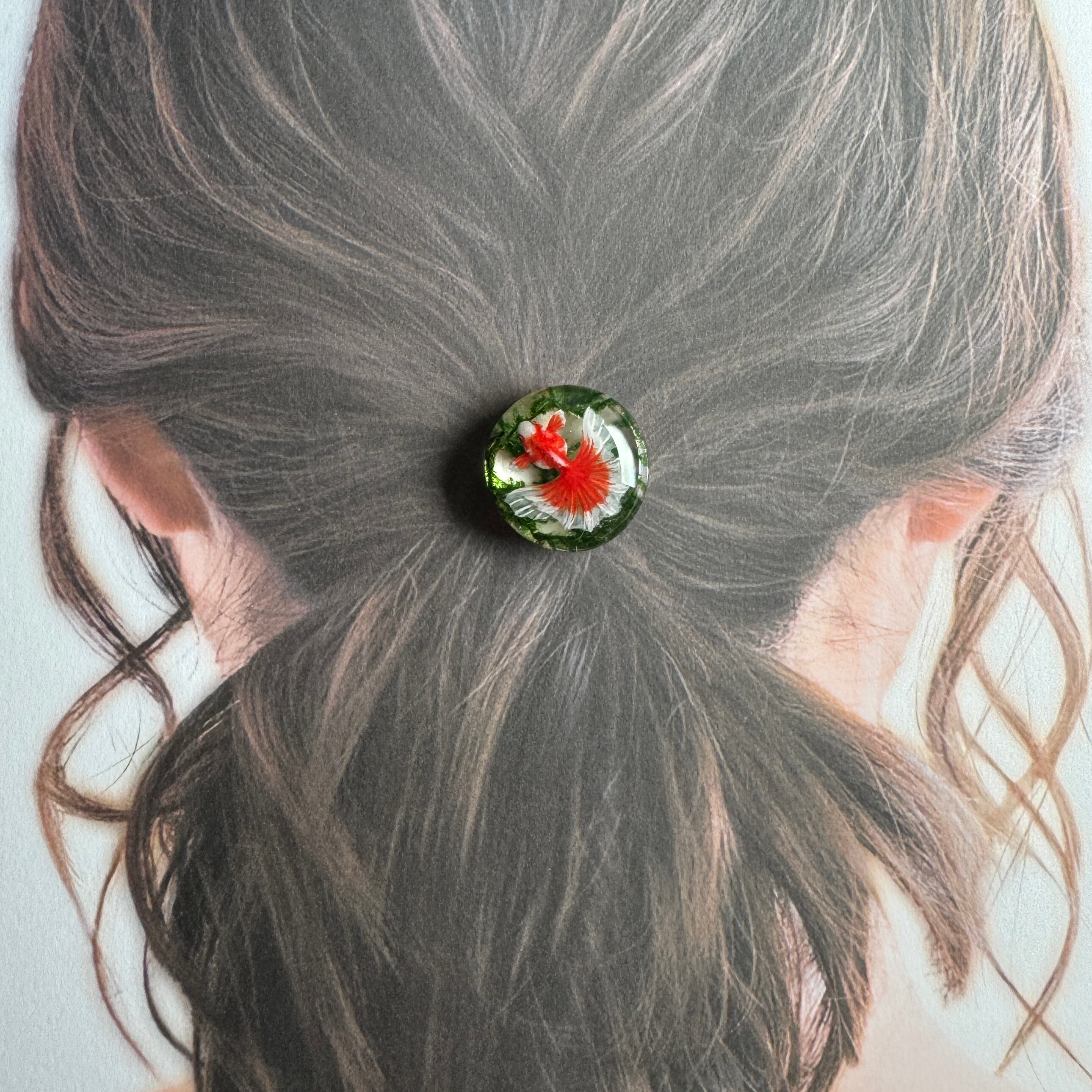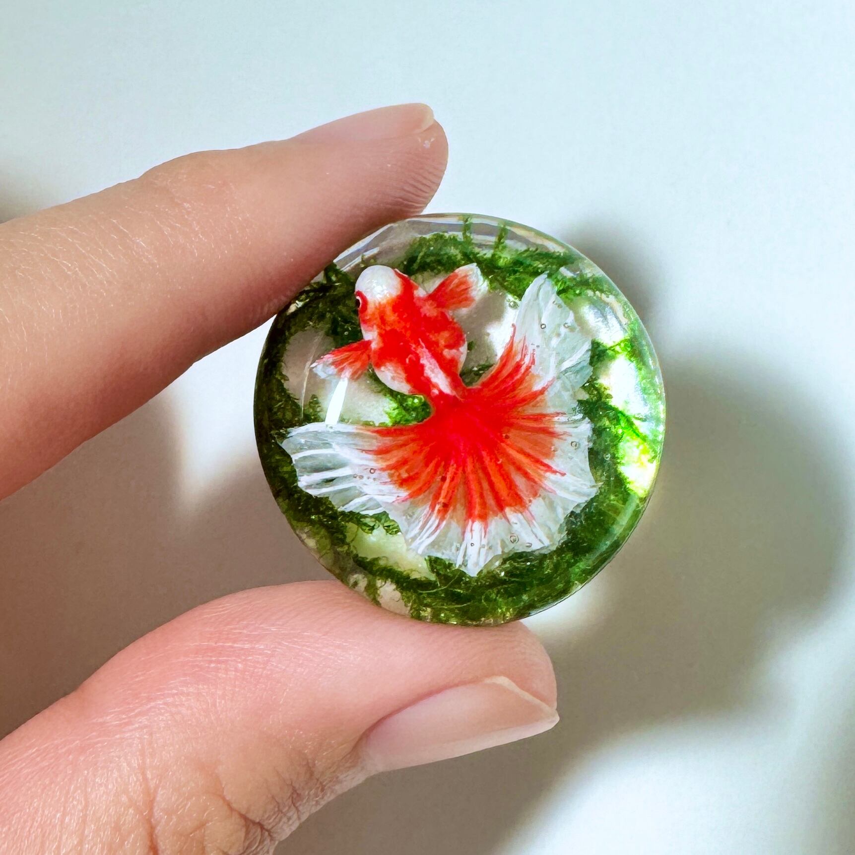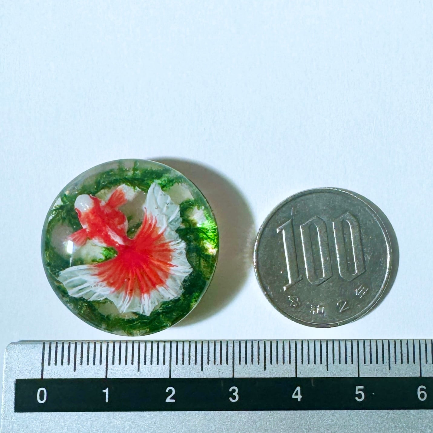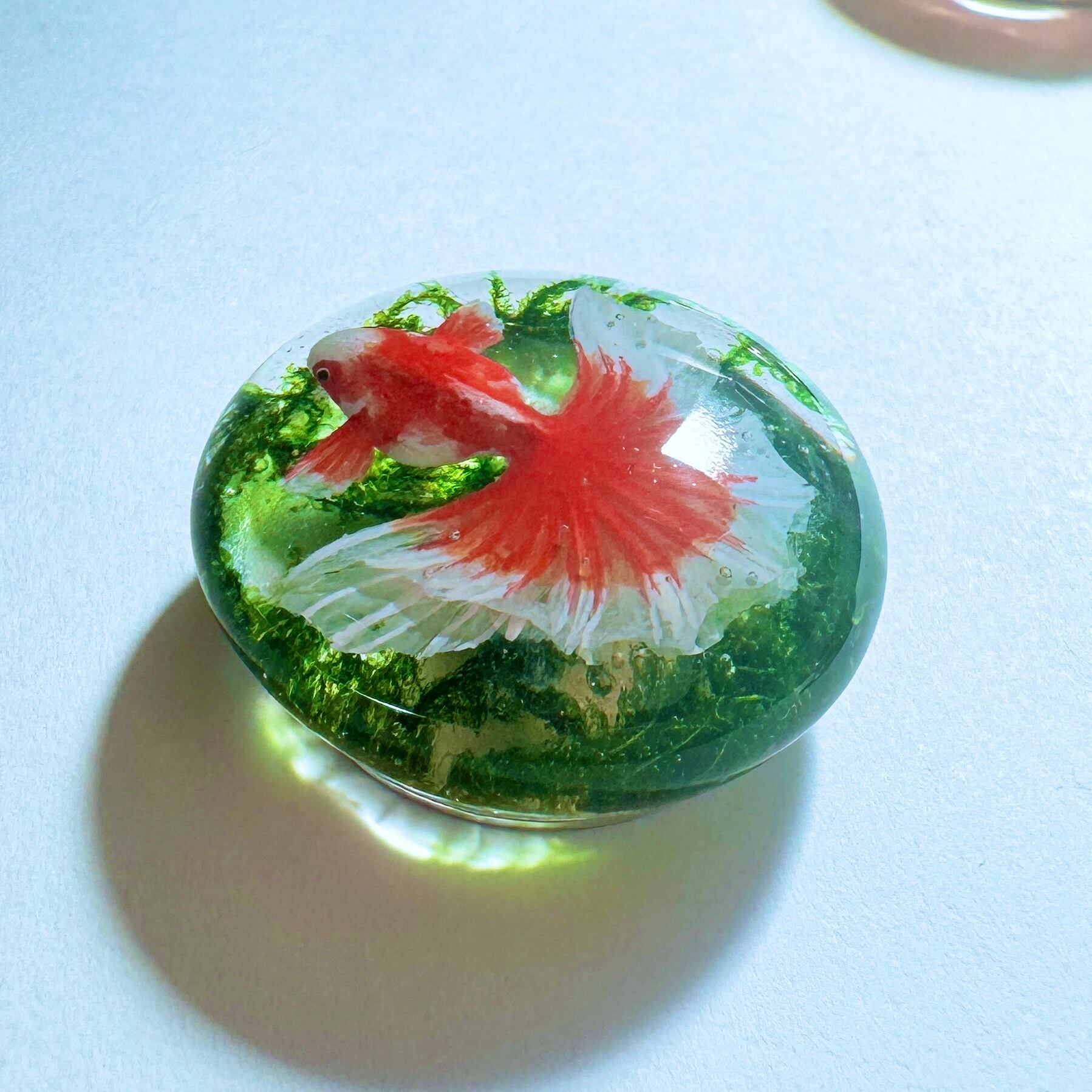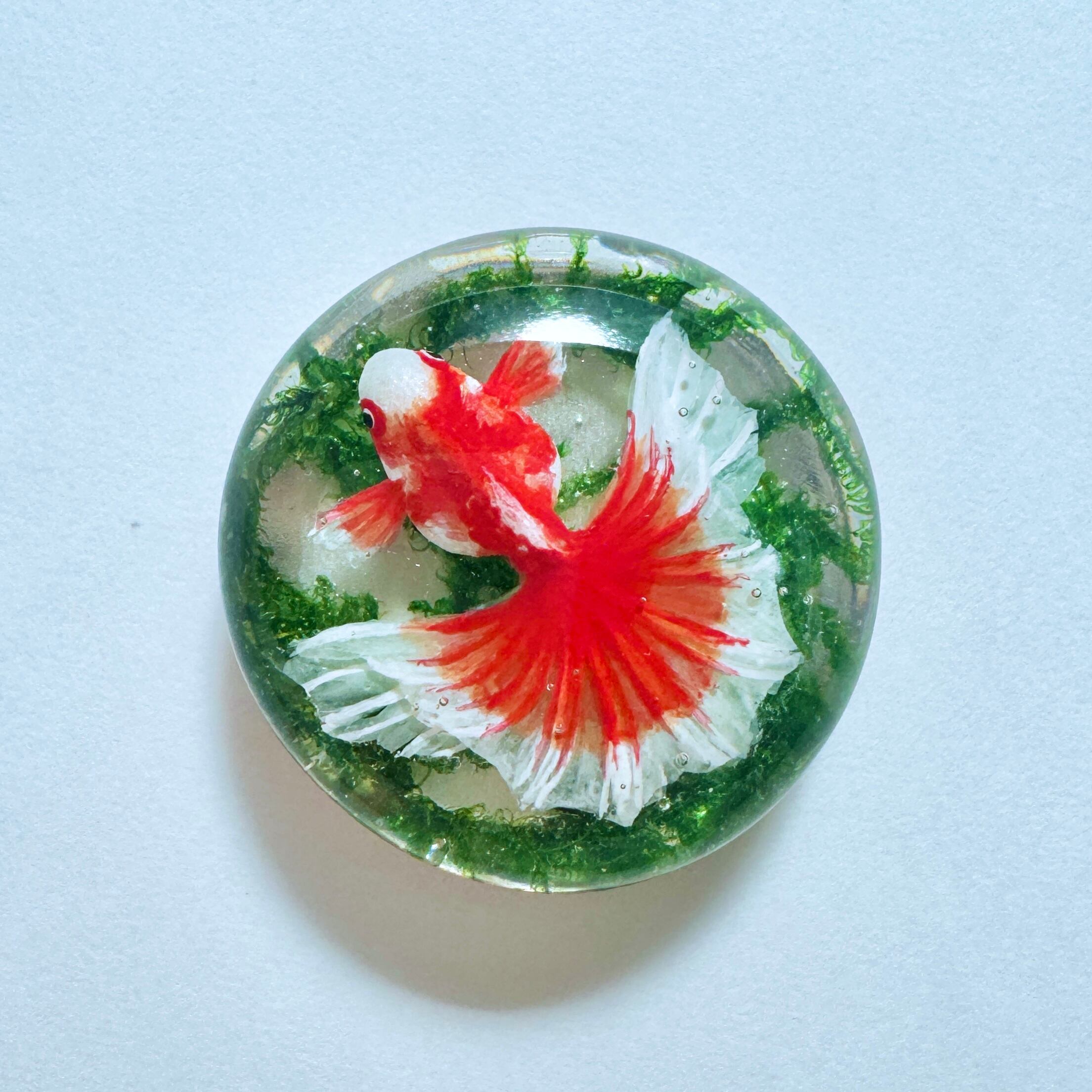 金魚も一匹ずつ型を使わずに造形し、小さな目をつけ、ヒレを描いておりますので、体の大きさやお顔や模様などお写真と若干異なります。