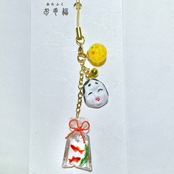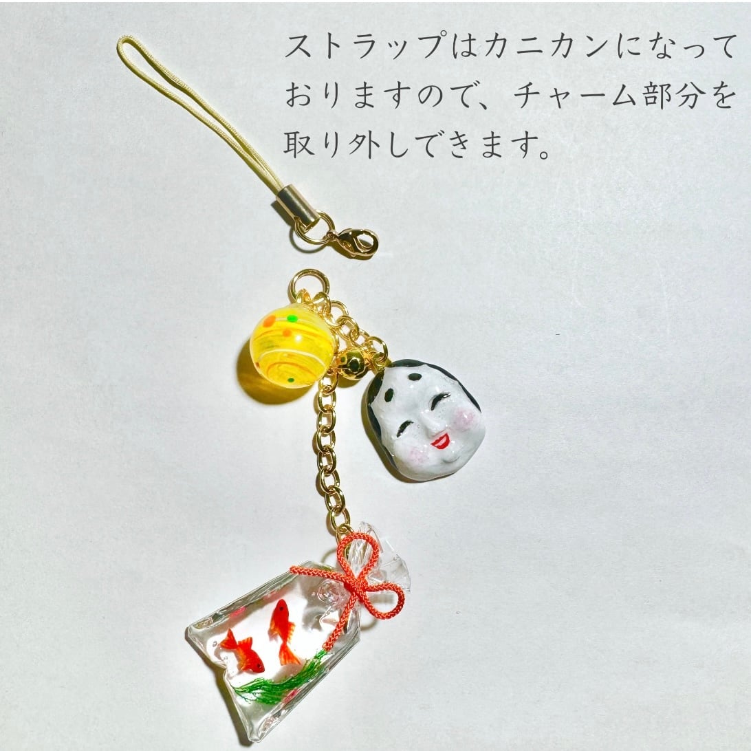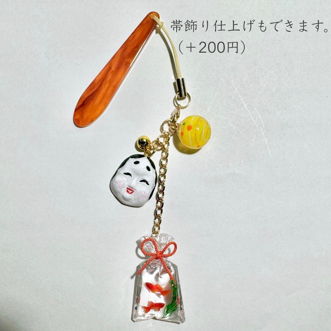 縁日のミニチュアストラップ お多福 帯飾り キーホルダー