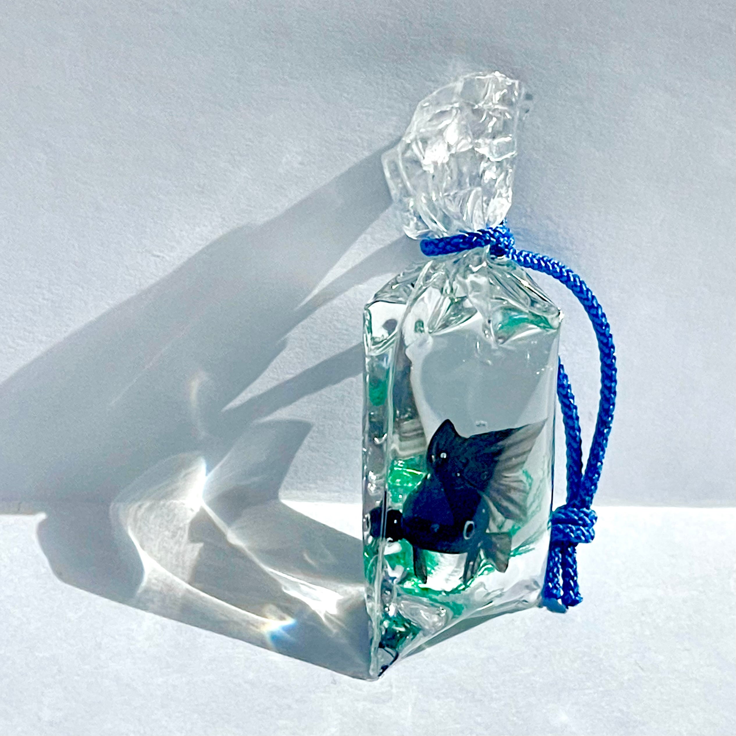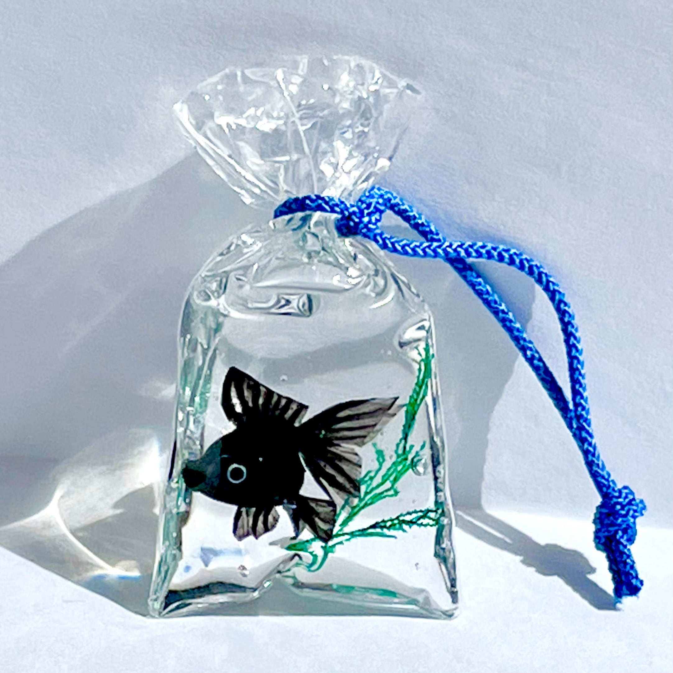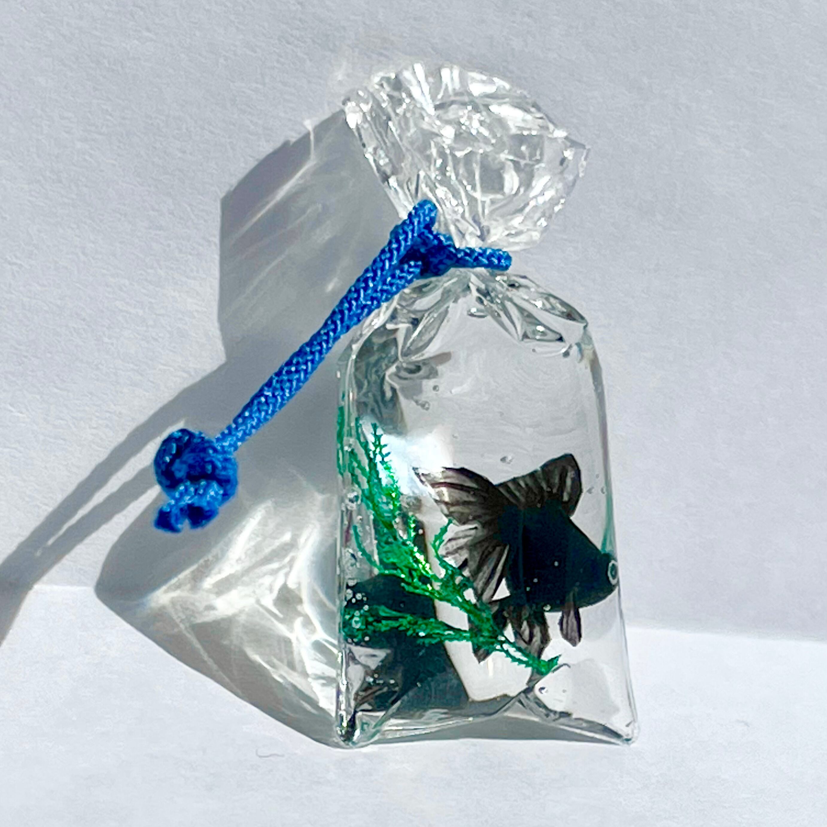 こちらは出目金の泳ぐ金魚袋のミニチュアです。