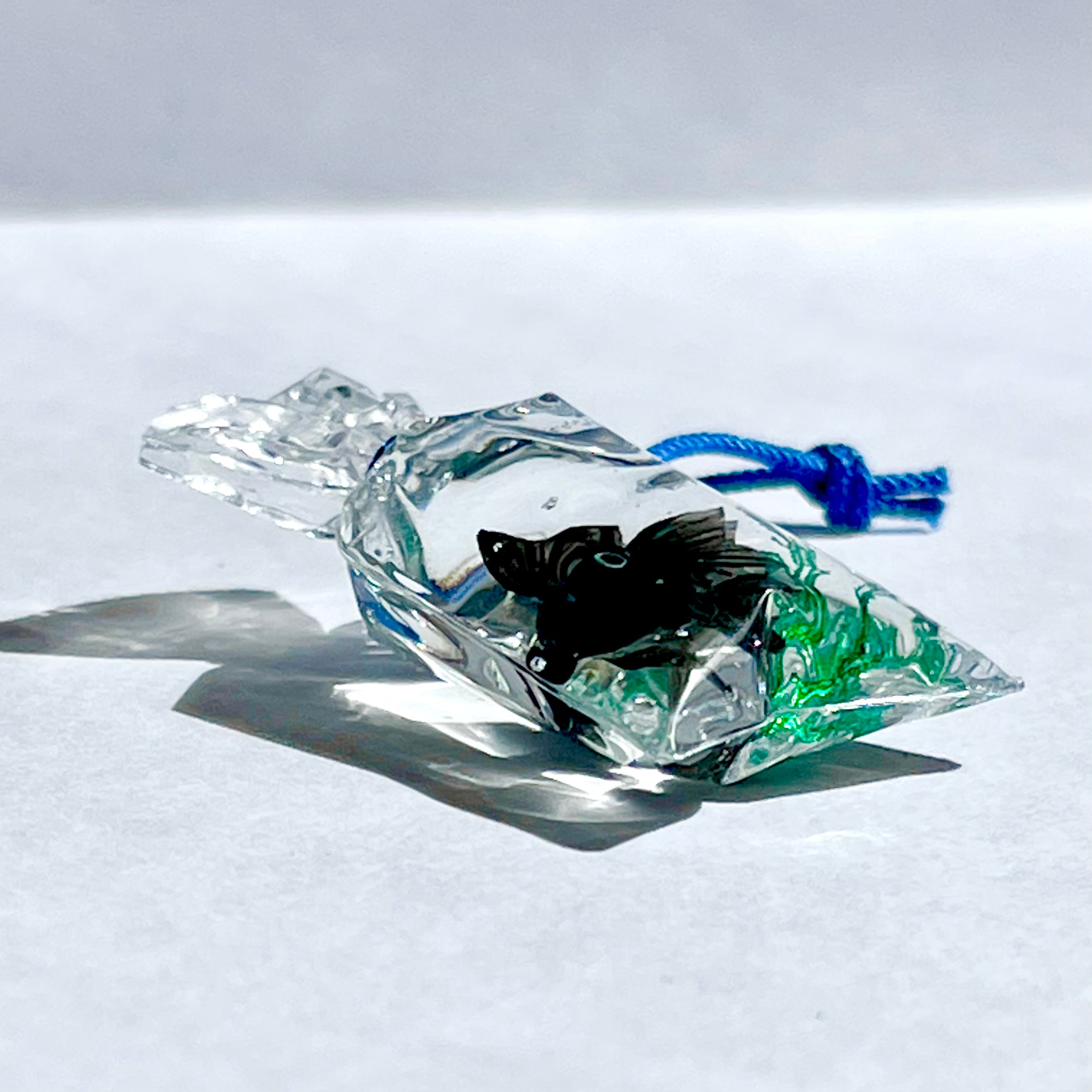 水草も一本ずつ封入しているため、量や形など作品ごとに違いがございます。