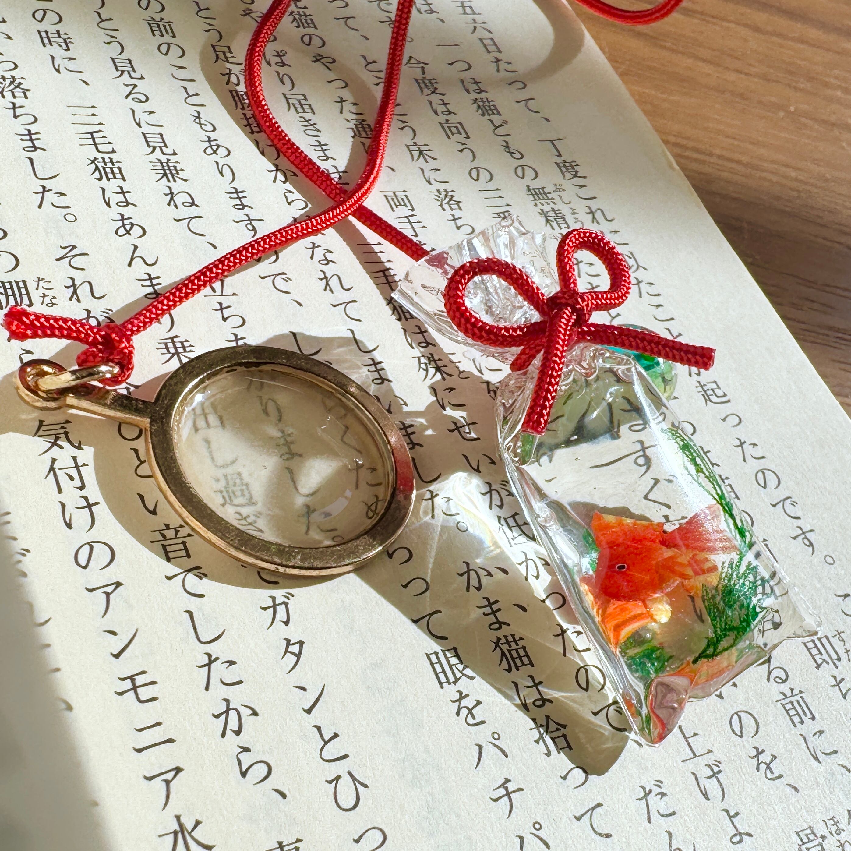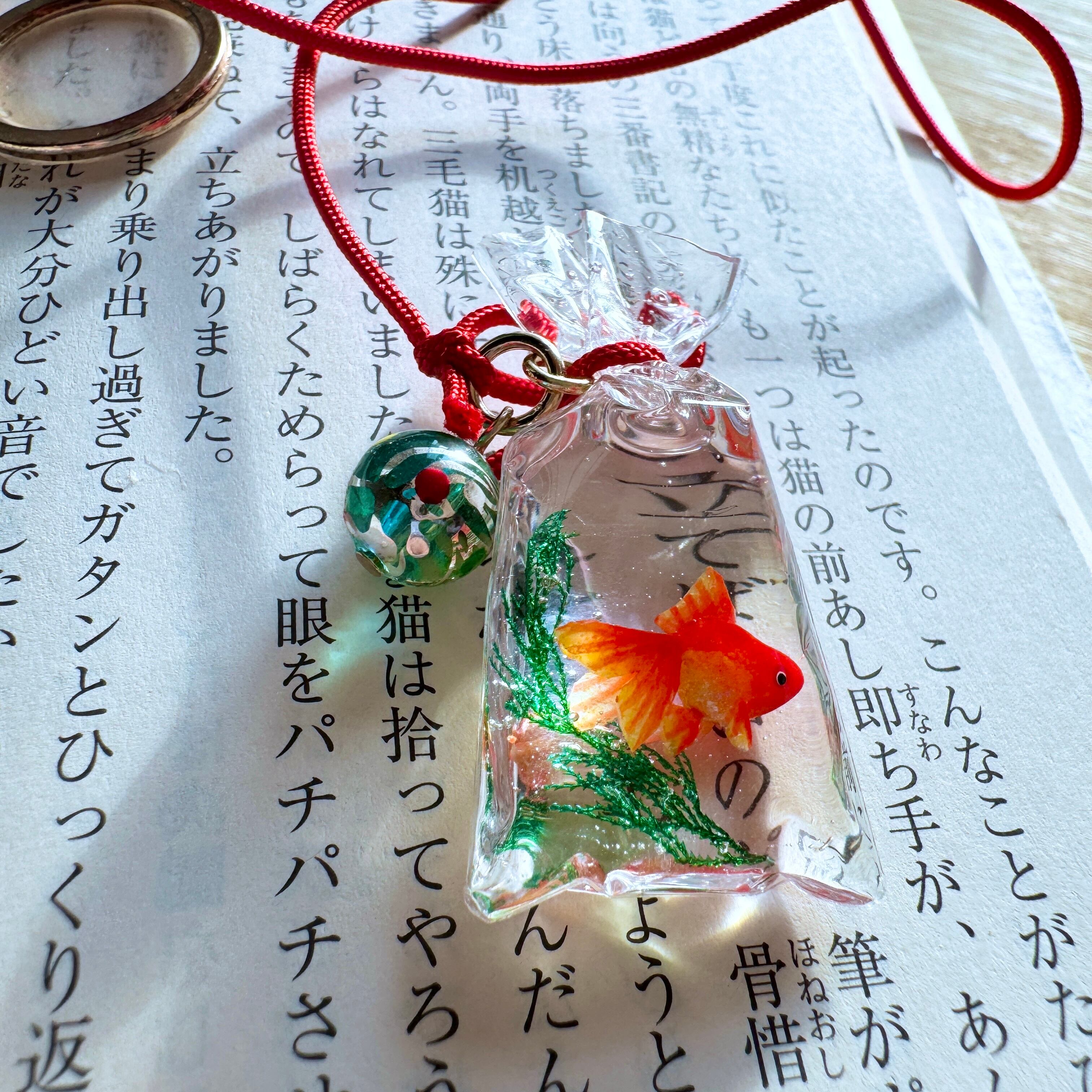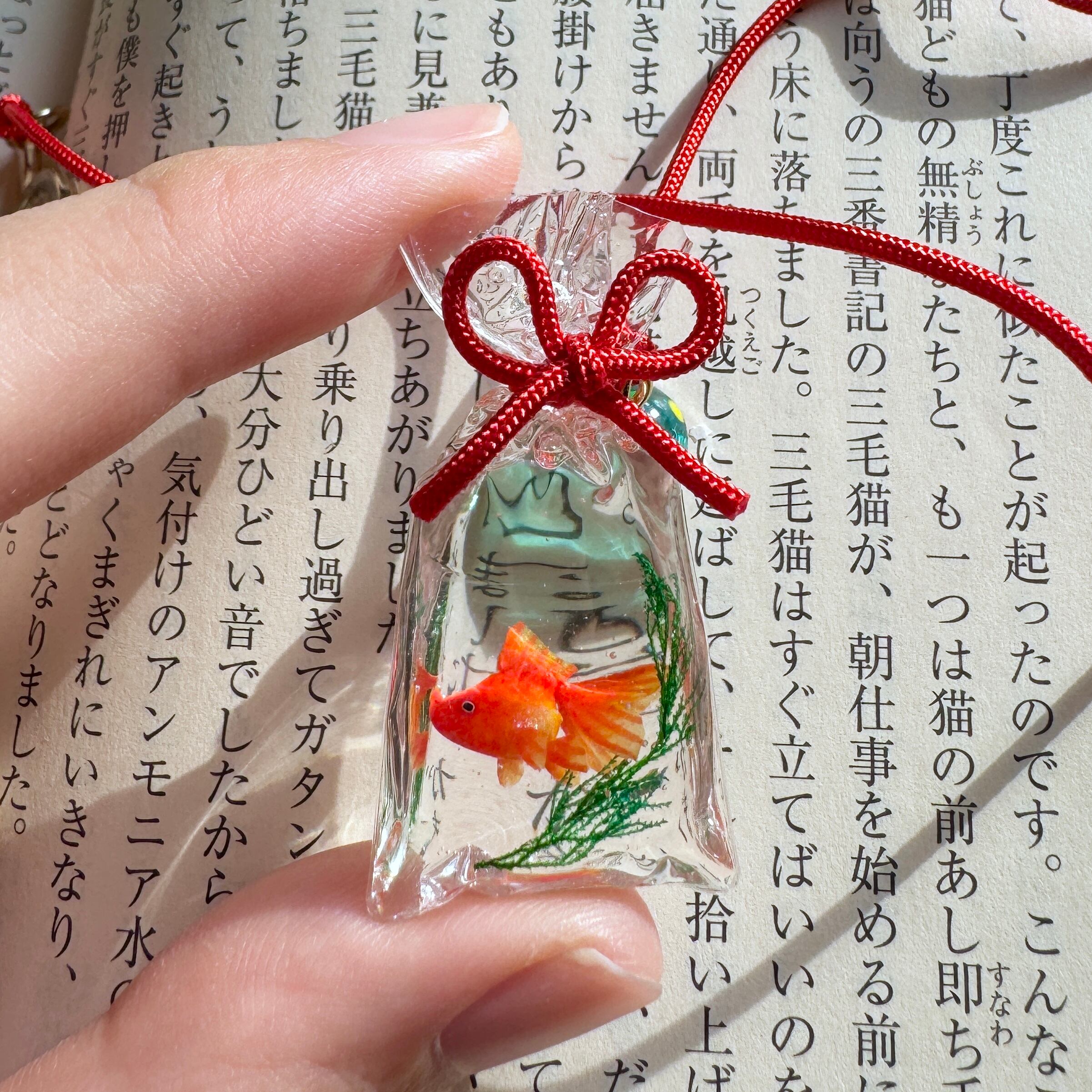 金魚も一匹ずつ型を使わずに造形し、小さな目をつけ、ヒレを描いておりますので、体の大きさやお顔や模様などお写真と若干異なります。