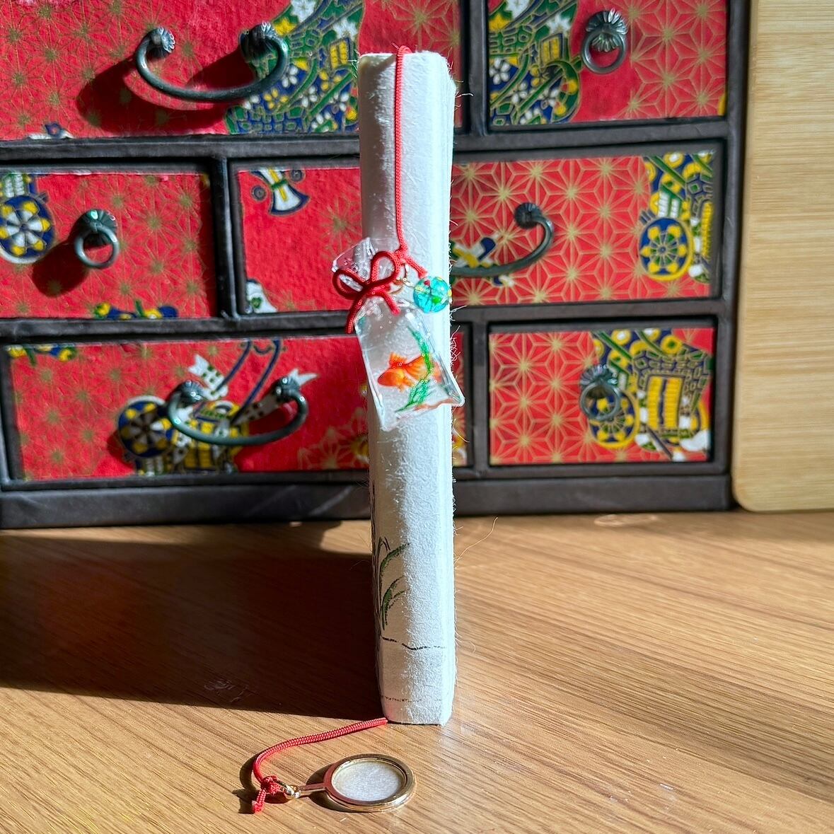 ポイには雲竜和紙を貼り、破れない様にレジンでコーティングいたしました。