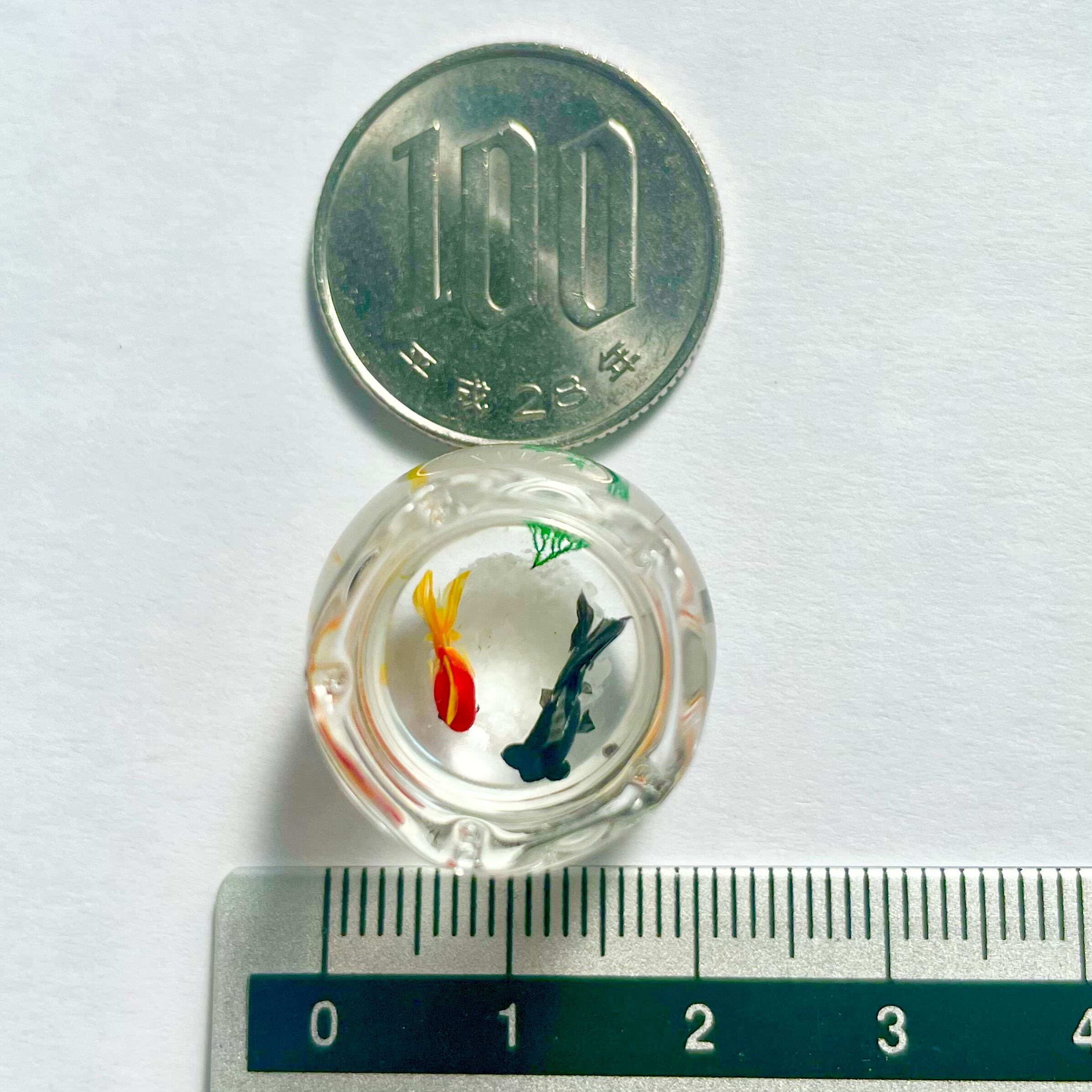 金魚も一匹ずつ型を使わずに造形し、小さな目をつけ、ヒレを描いておりますので、体の大きさやお顔や模様などお写真と若干異なります。