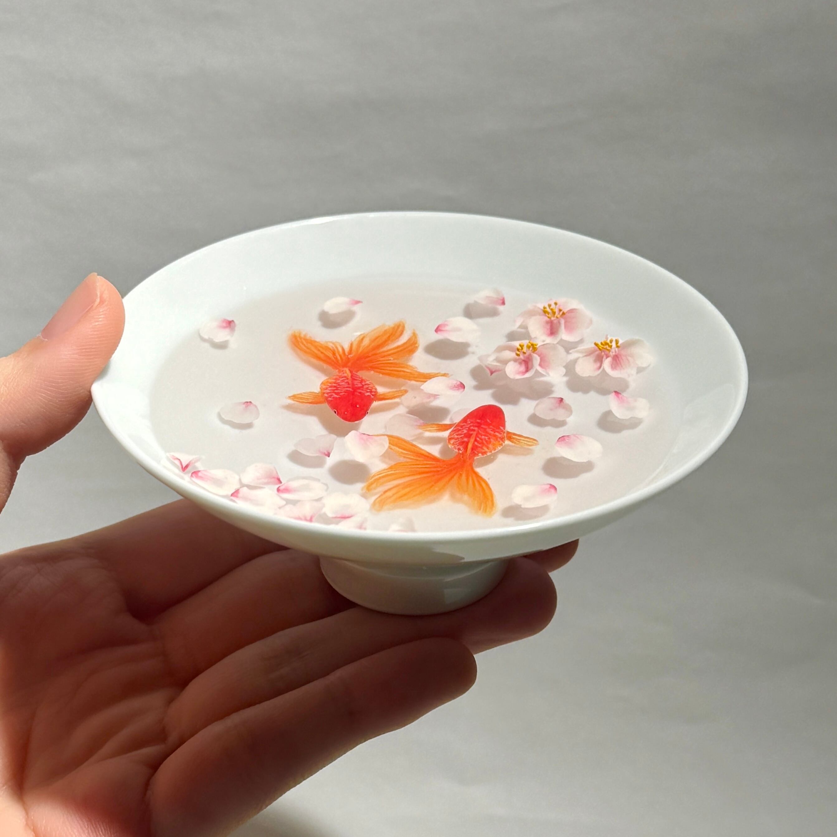 盃で泳ぐ金魚 大 ソメイヨシノ 置物