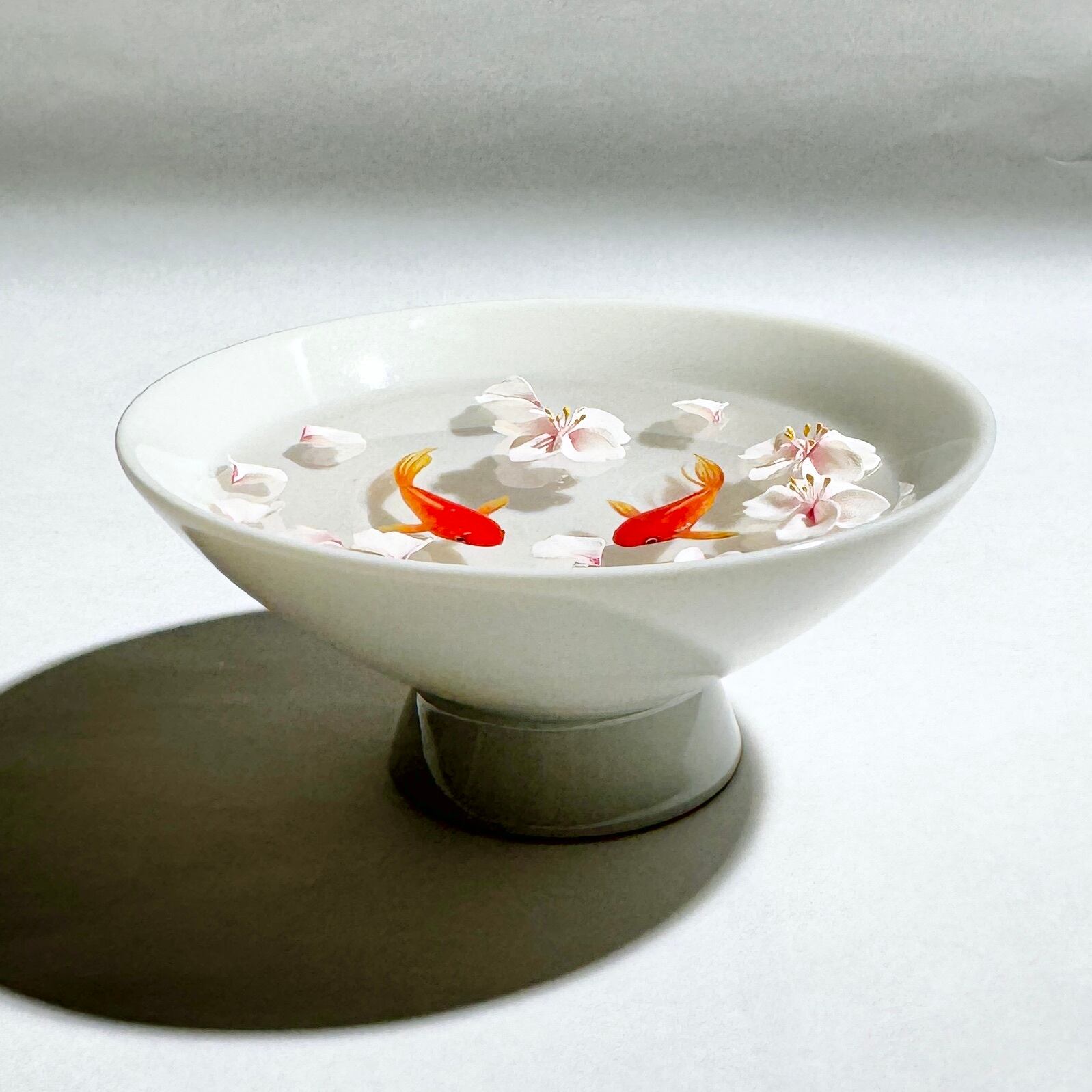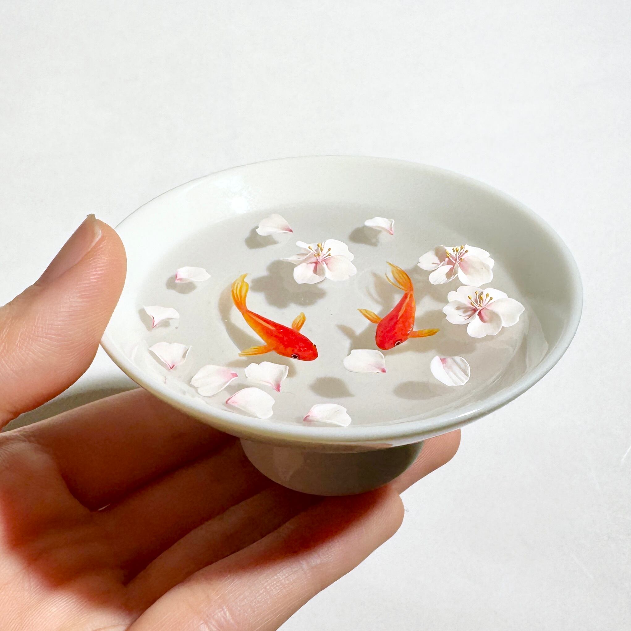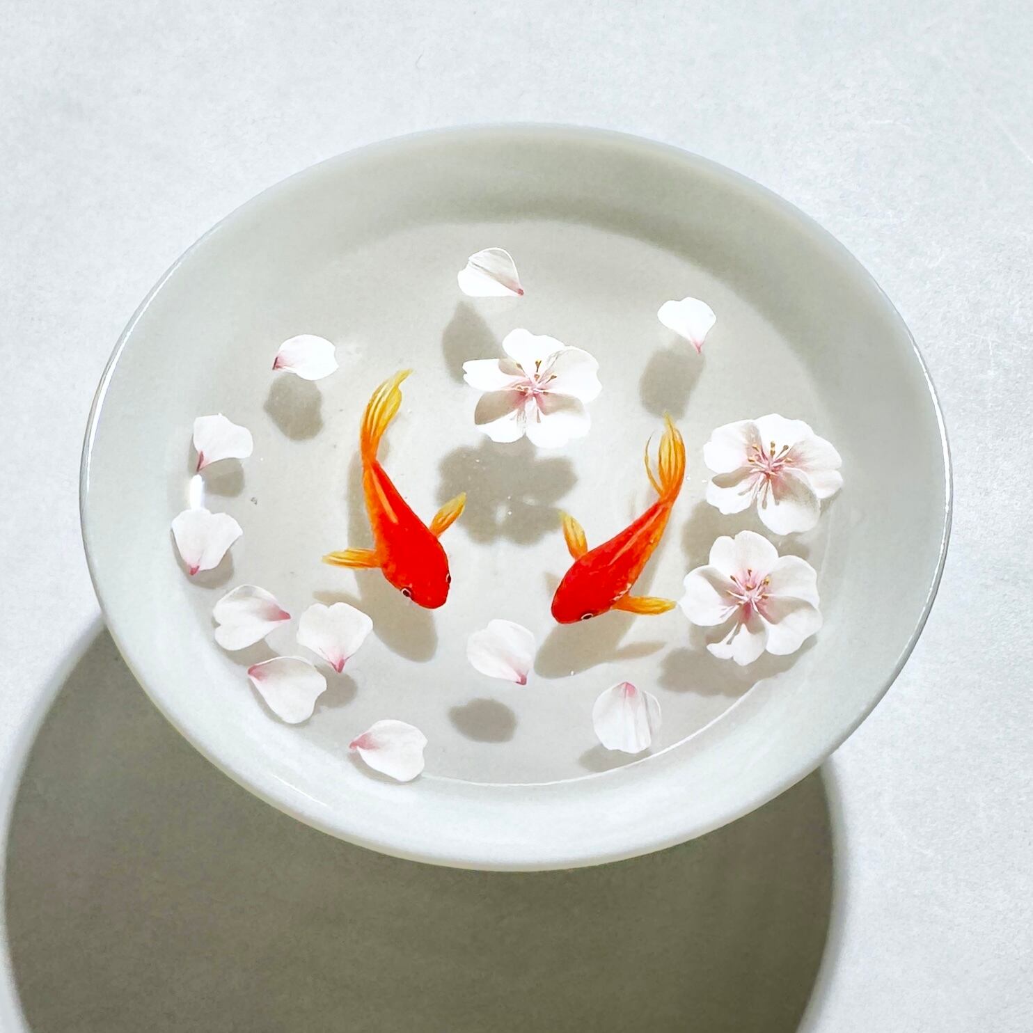 盃で泳ぐ金魚 ソメイヨシノ 置物
