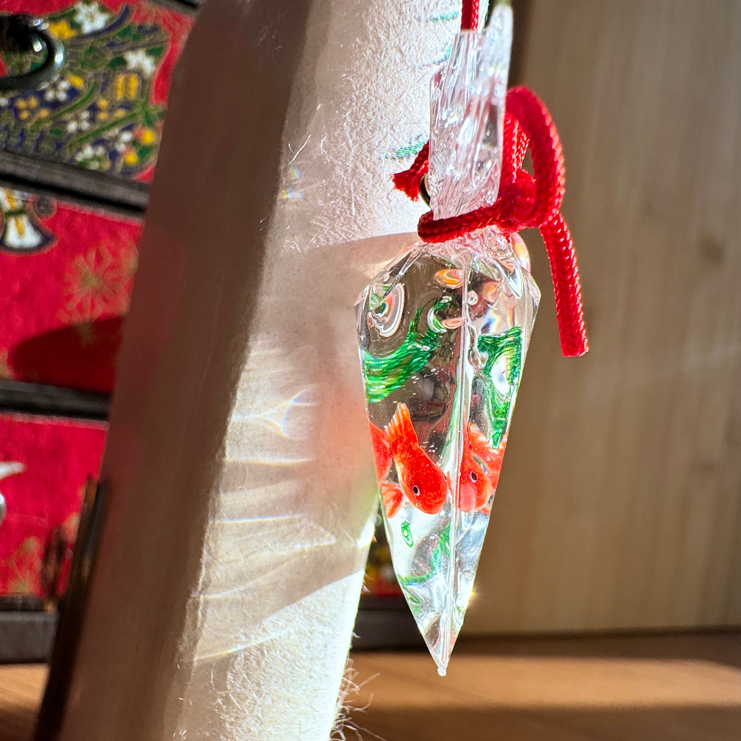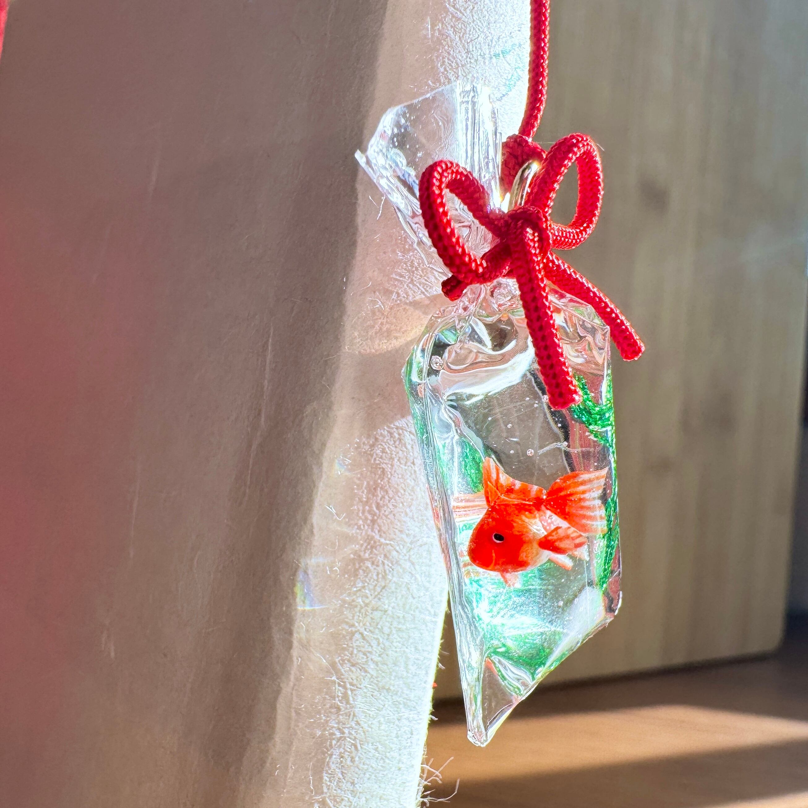 金魚も一匹ずつ型を使わずに造形し、小さな目をつけ、ヒレを描いておりますので、体の大きさやお顔や模様などお写真と若干異なります。