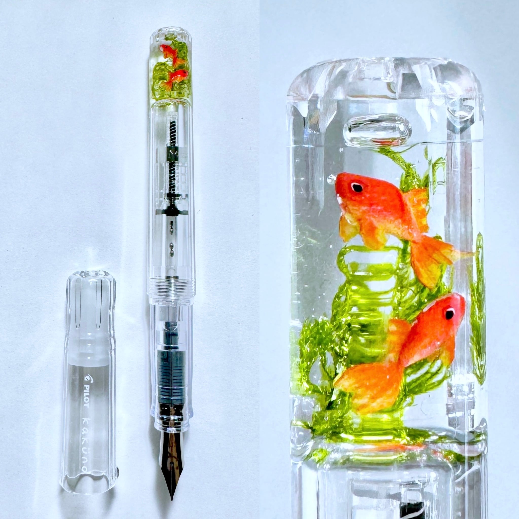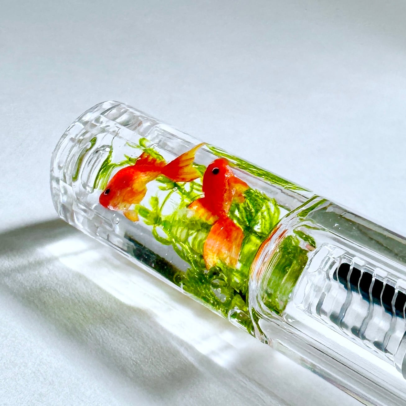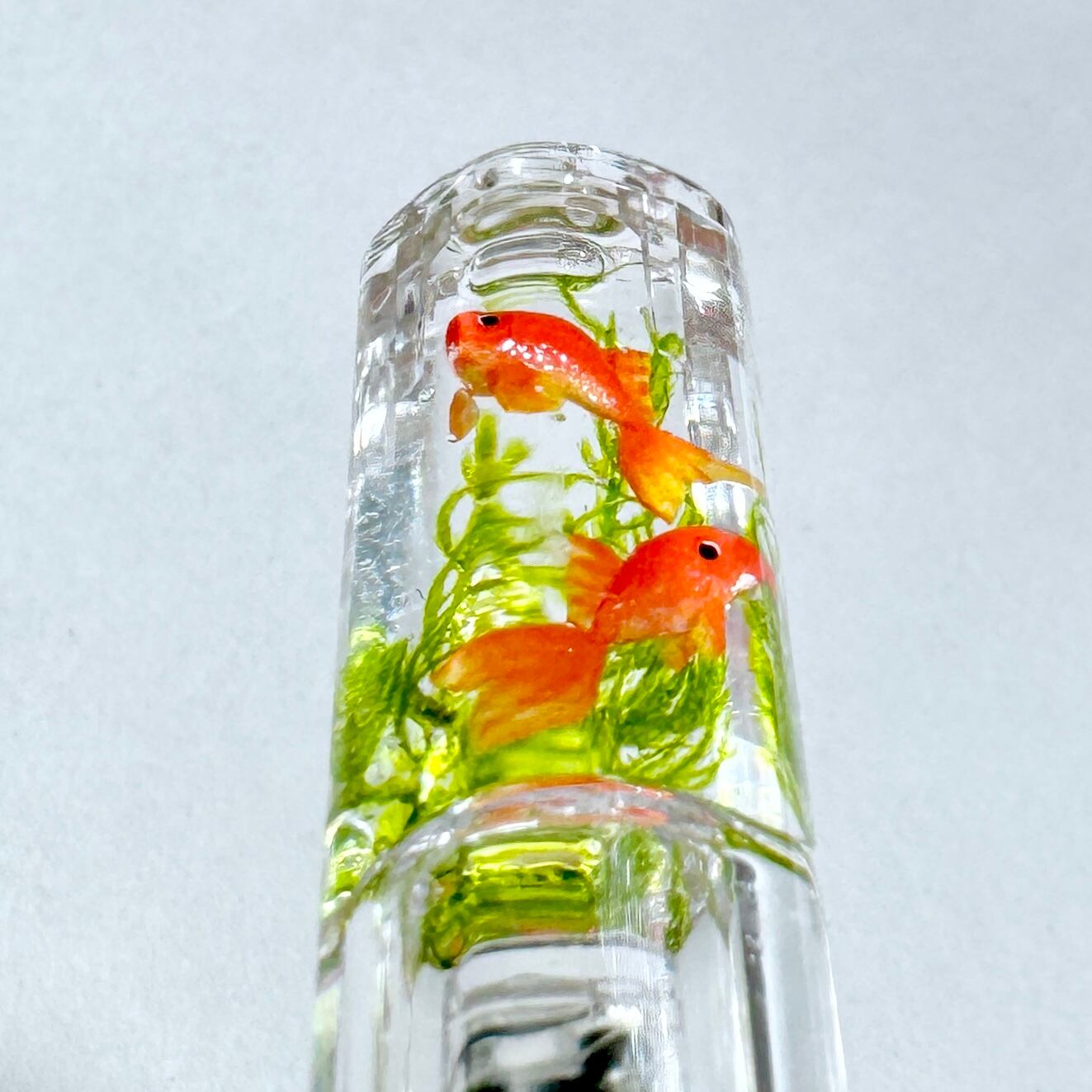 水草も一本ずつ封入しているため、量や形など作品ごとに違いがございます。