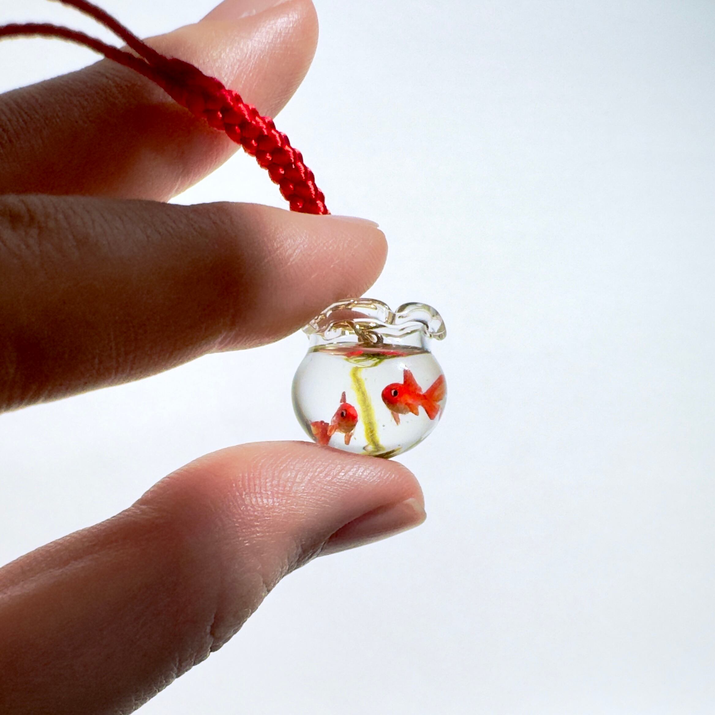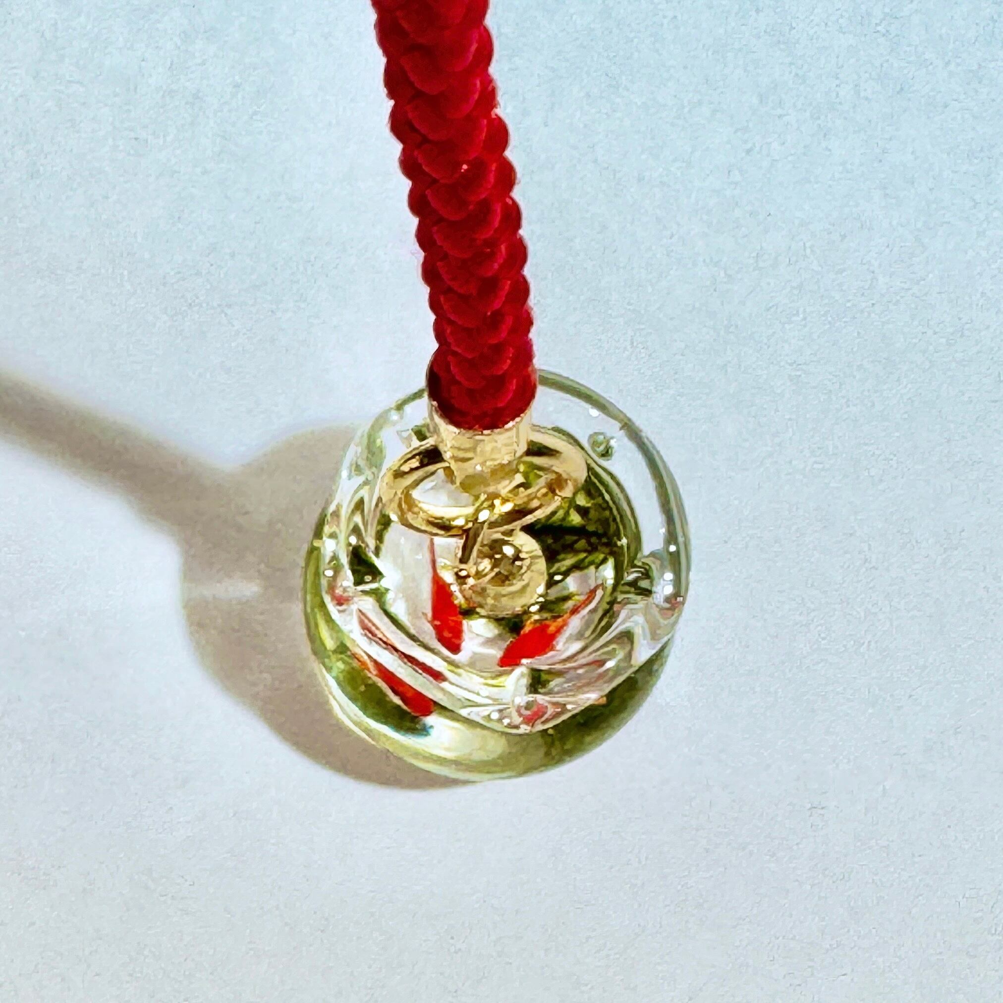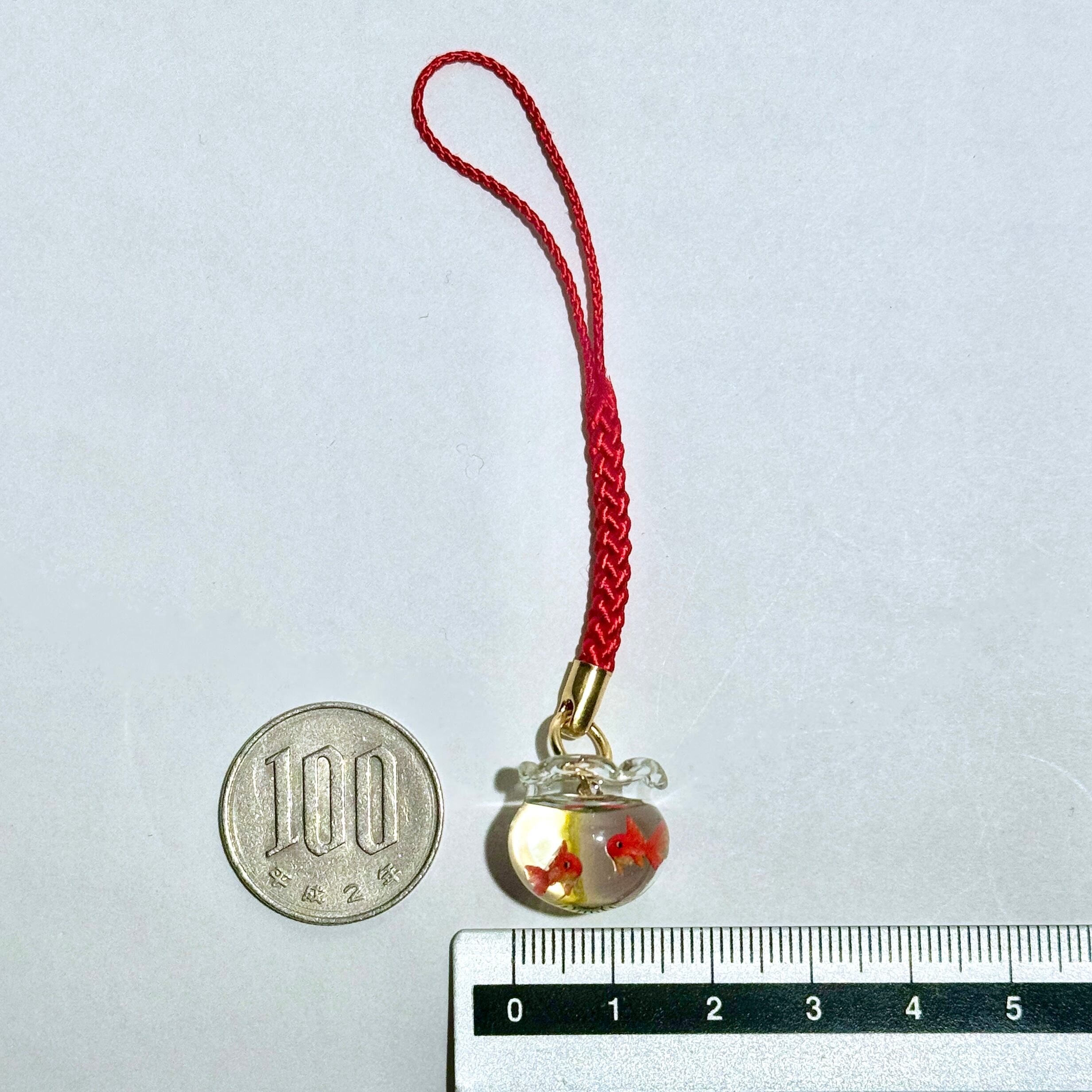 硝子の金魚鉢で泳ぐ金魚 小(和金二匹) 根付 帯飾り ストラップ ミニチュア