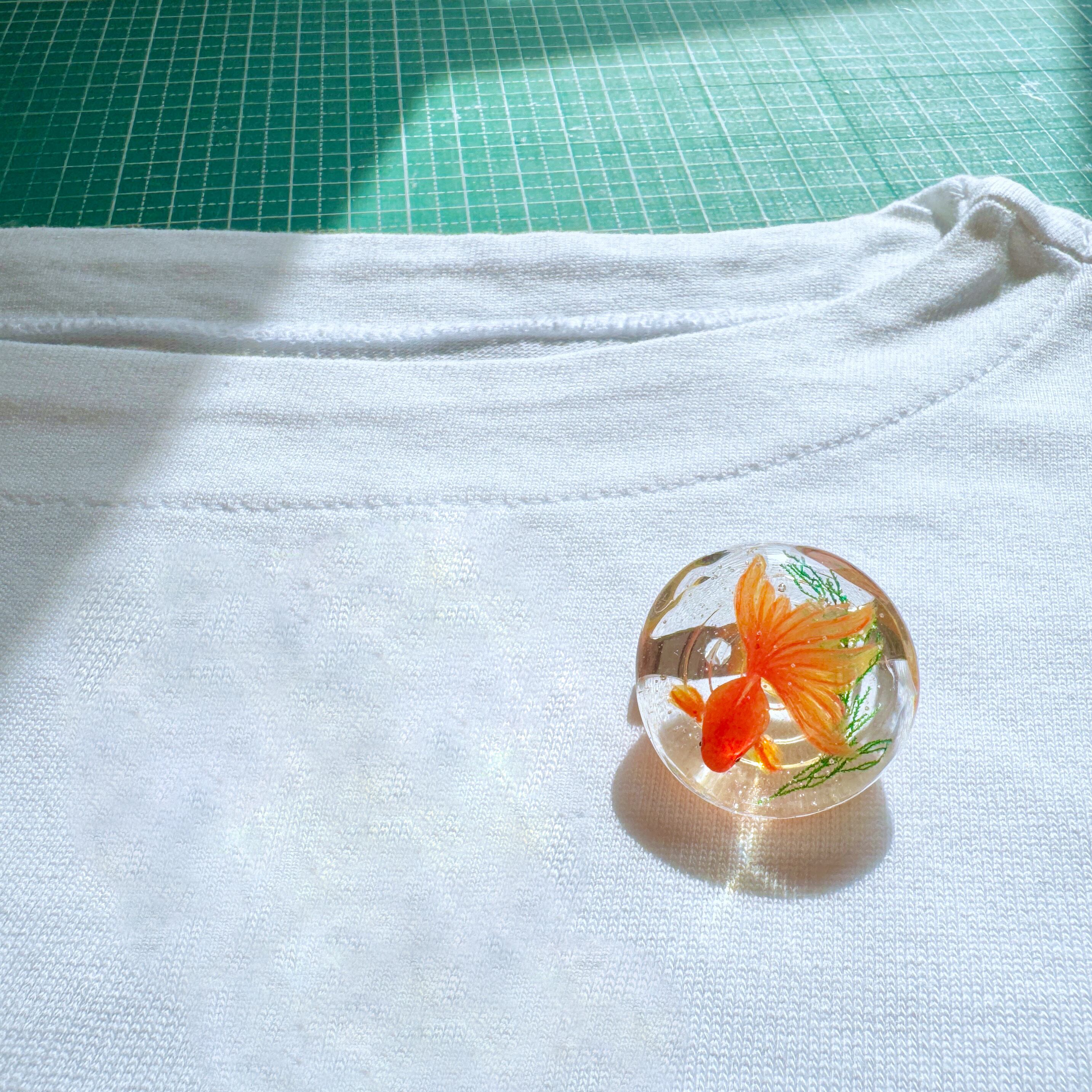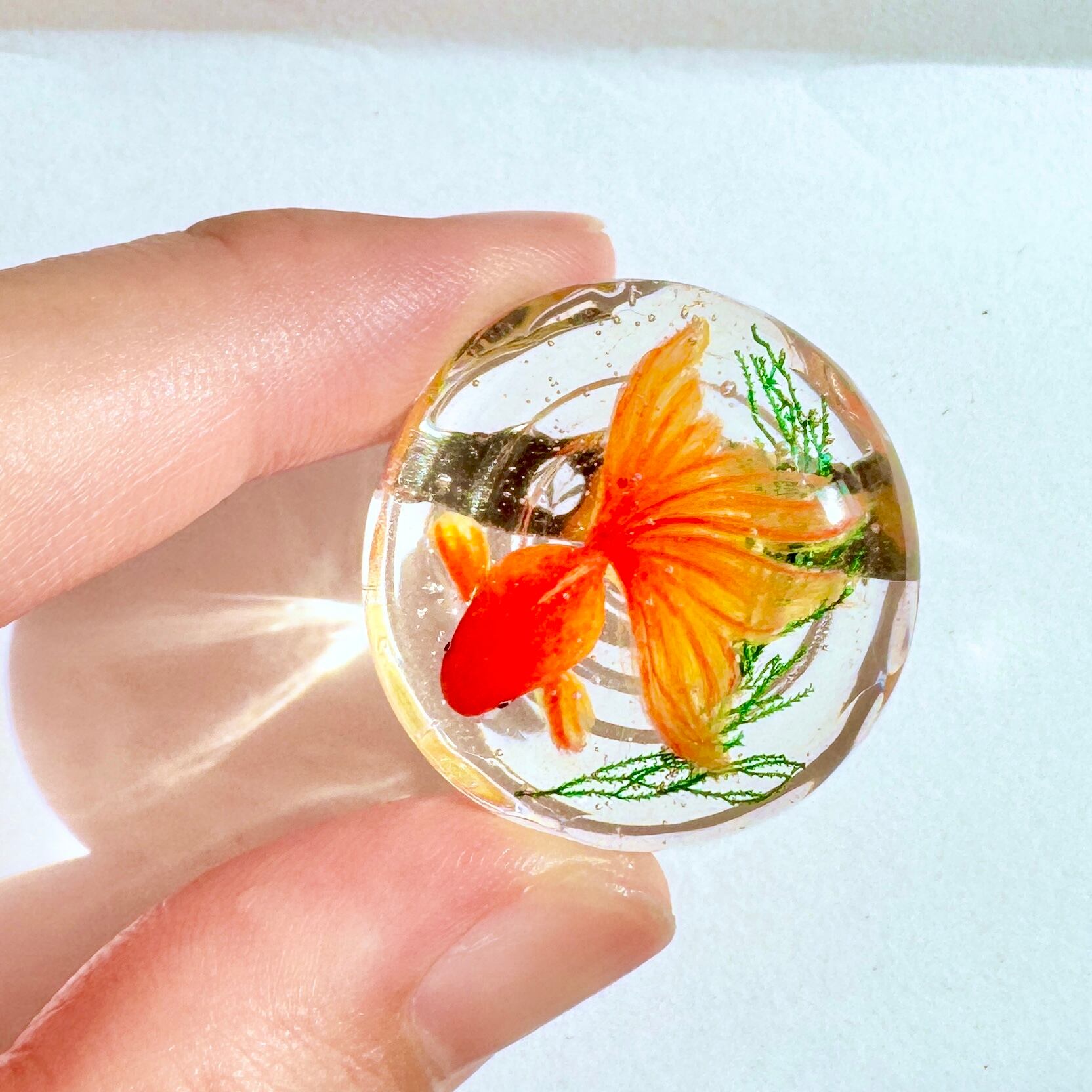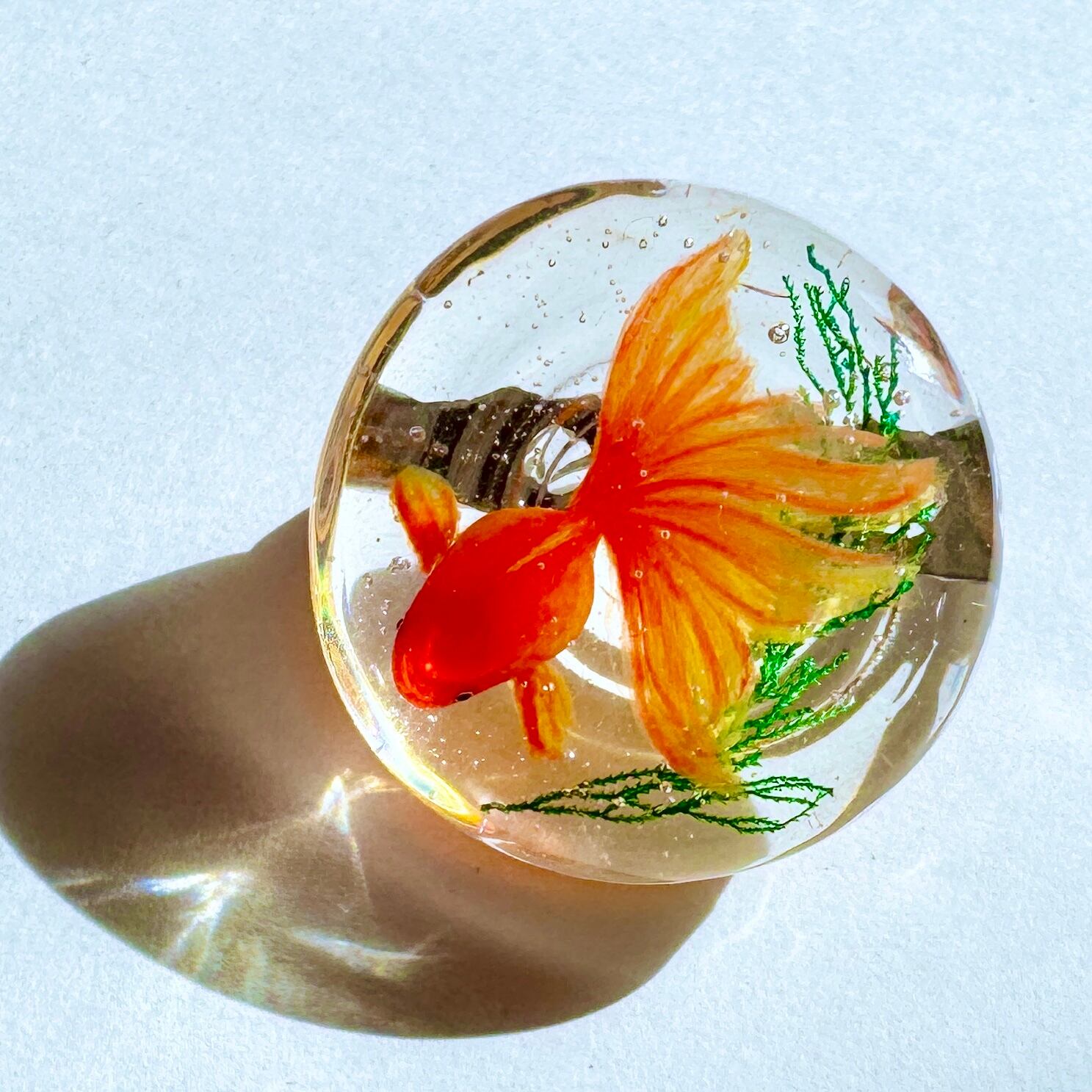 金魚も一匹ずつ型を使わずに造形し、小さな目をつけ、ヒレを描いておりますので、体の大きさやお顔や模様などお写真と若干異なります。