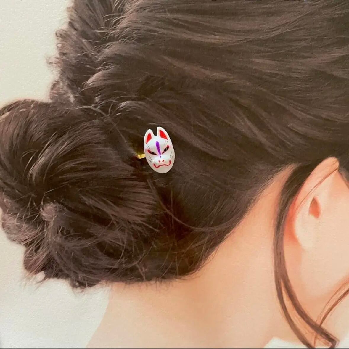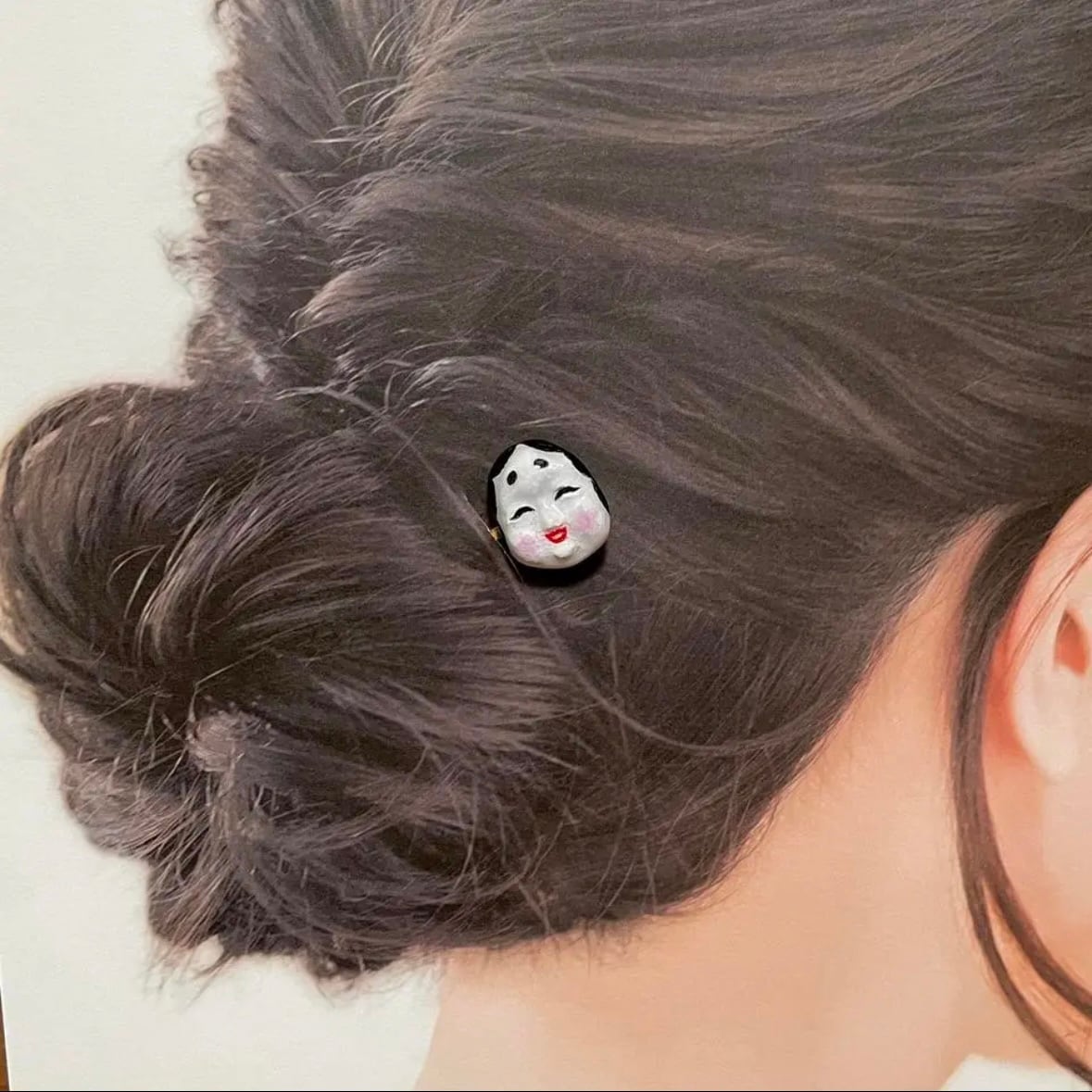 小さなお顔ですが、口紅の山やアイラインの跳ね上げなども細い筆で丁寧にお化粧いたしました。