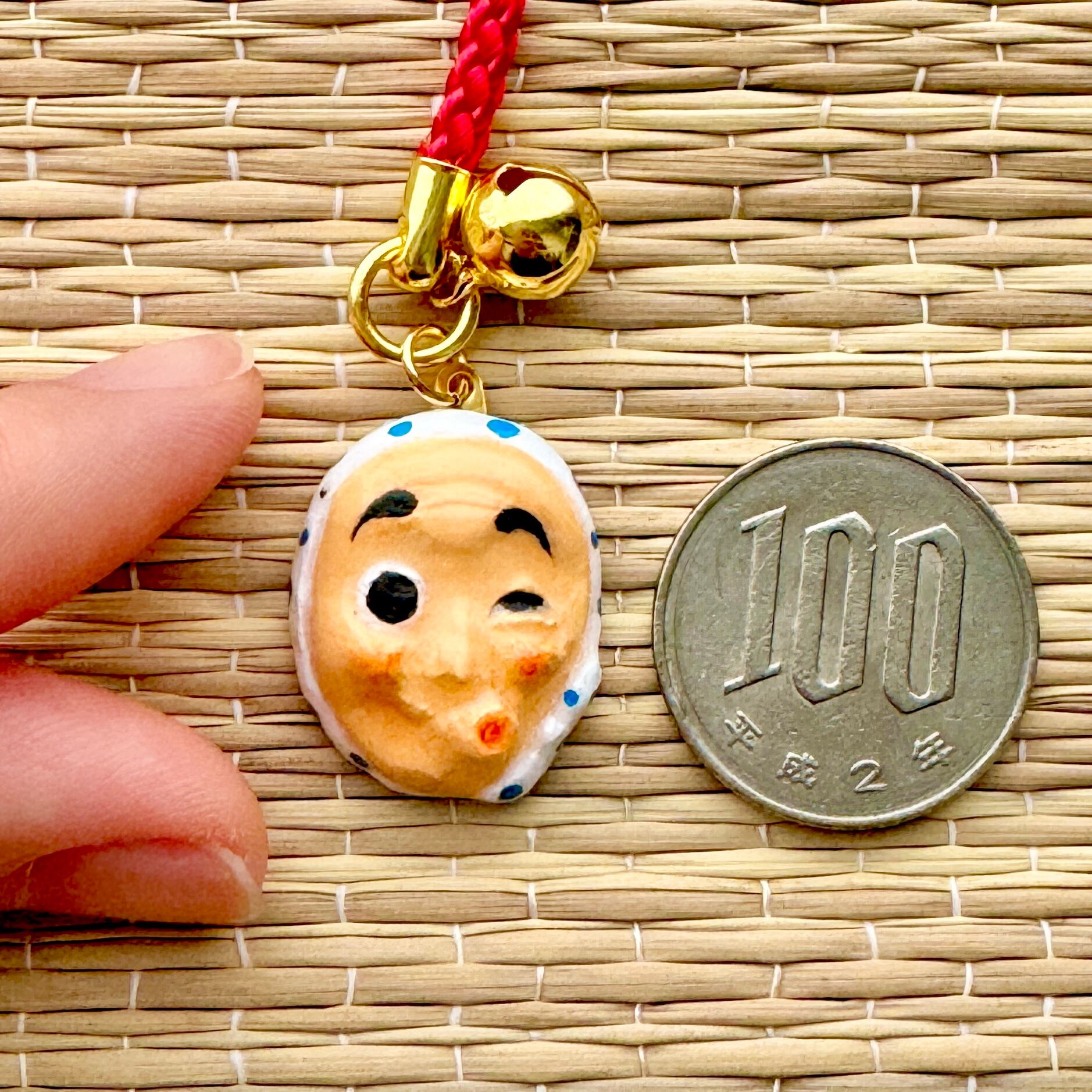 ひょっとこ面 根付 帯飾り 面屋 縁日