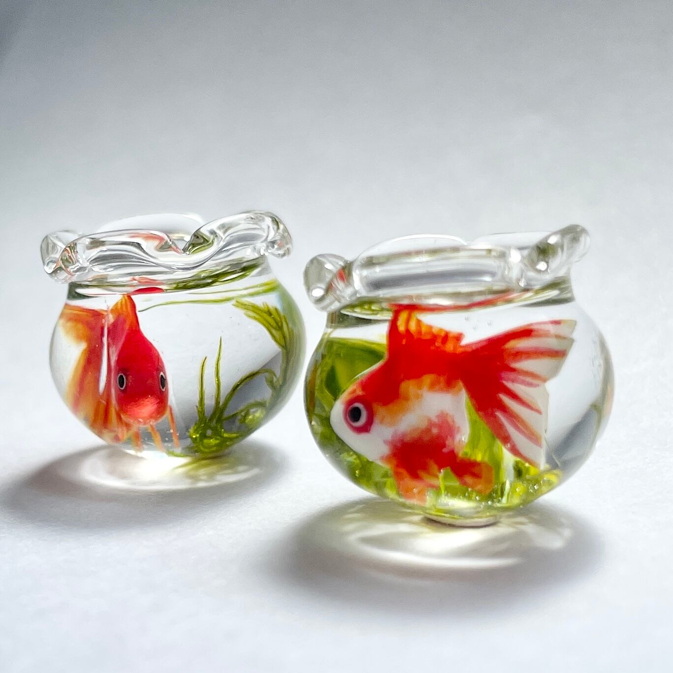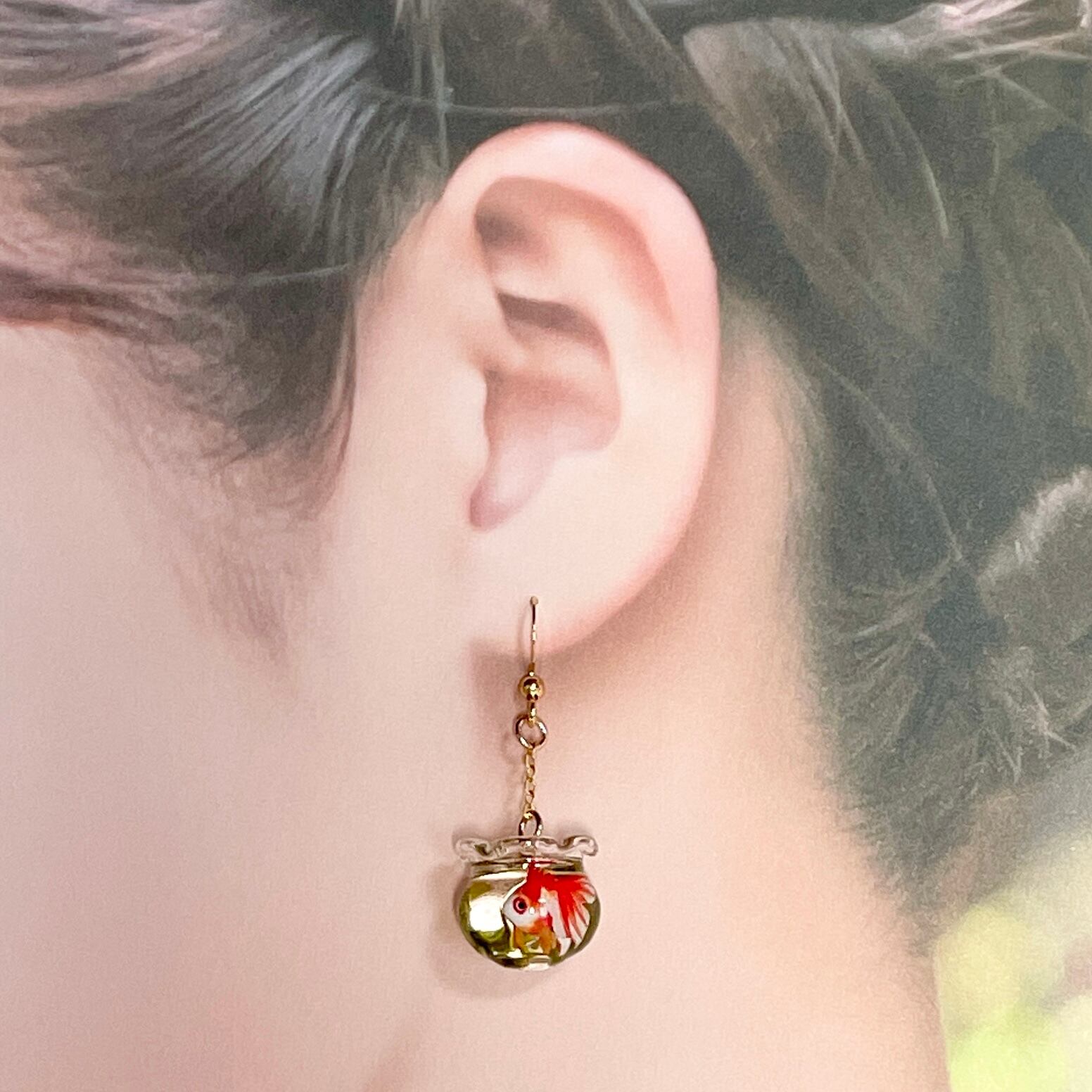 こちらはミニチュア金魚鉢のピアスです。