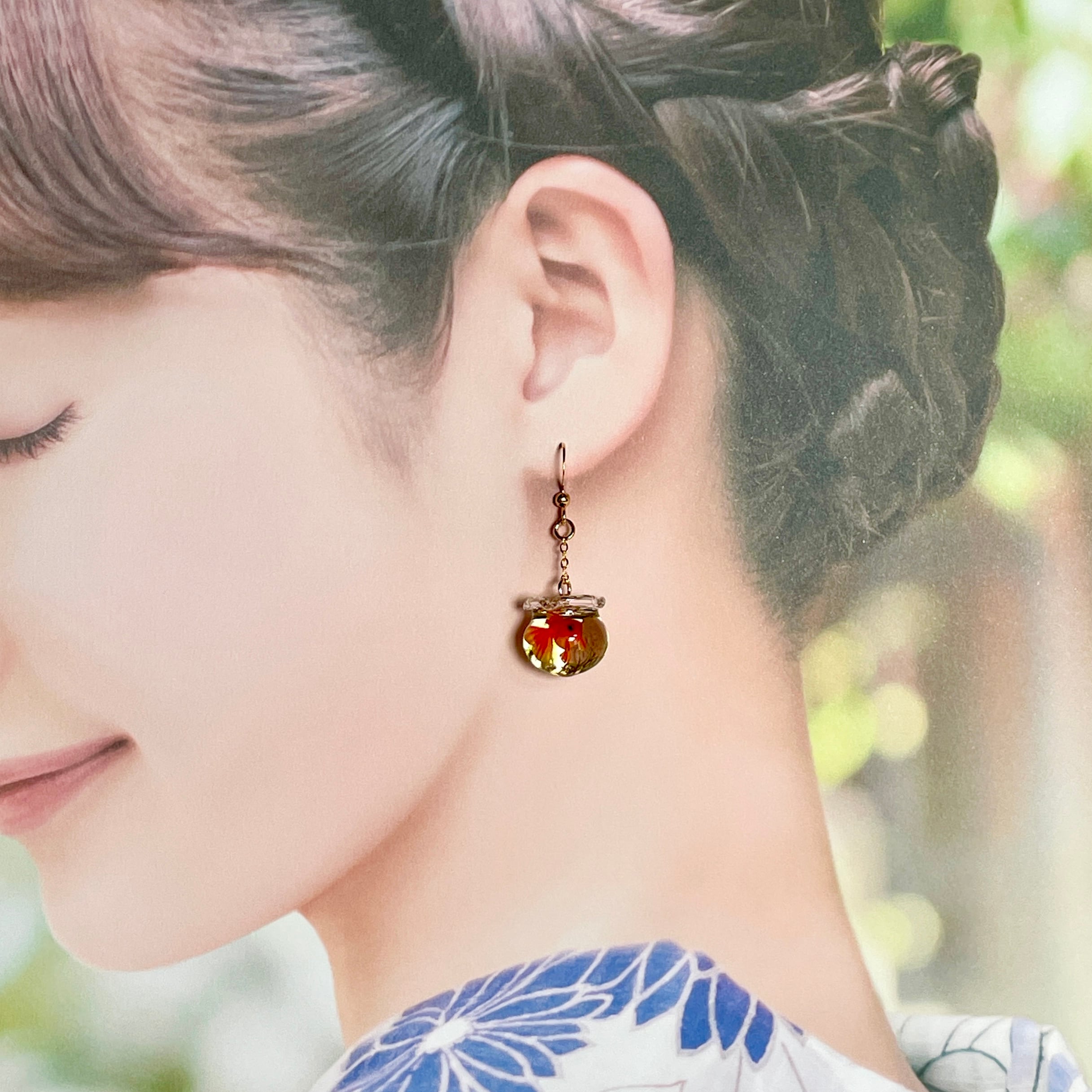 15mmの硝子の金魚鉢が耳元でゆらゆらと揺れます。