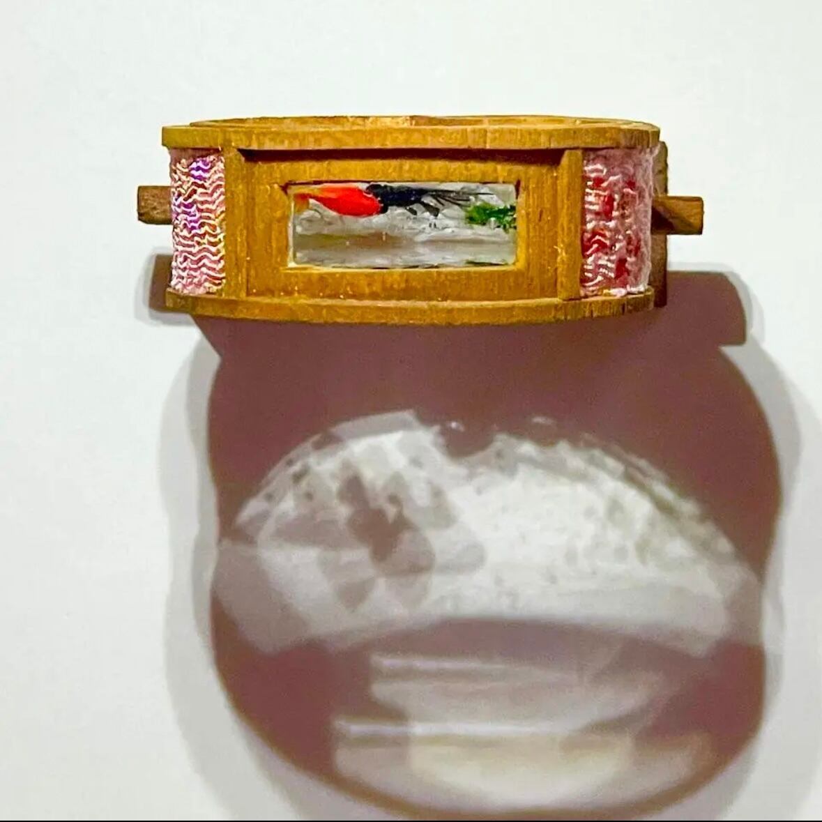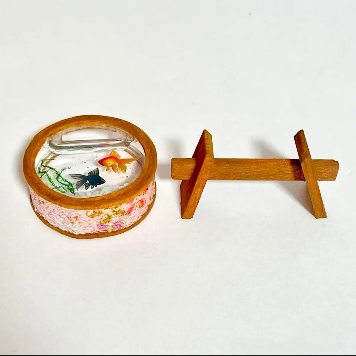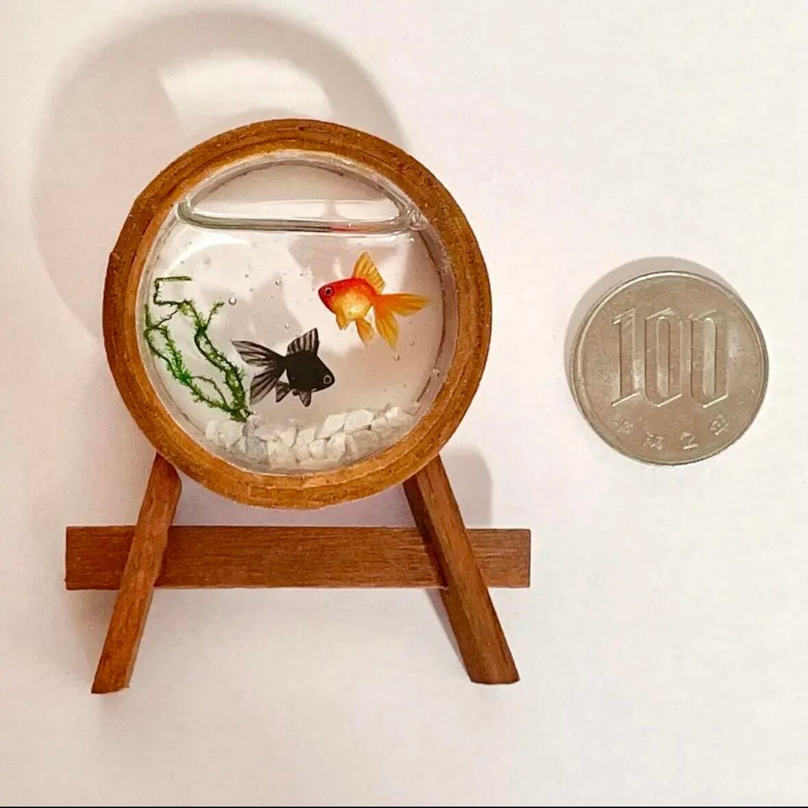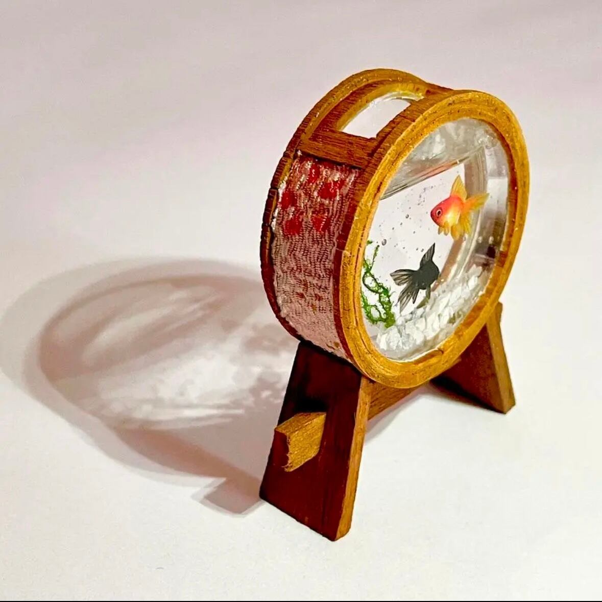 金魚桶で泳ぐ金魚(茶) ミニチュア