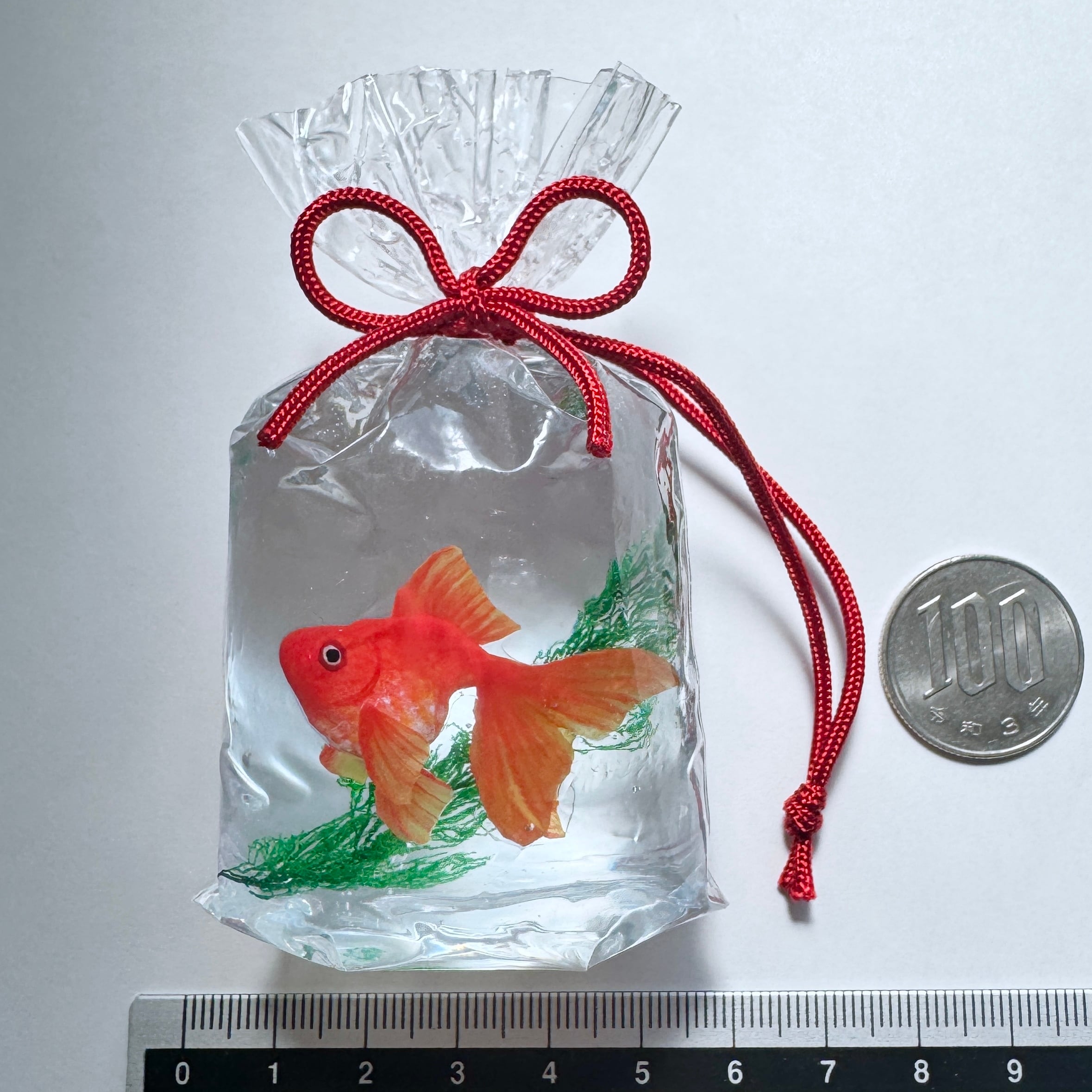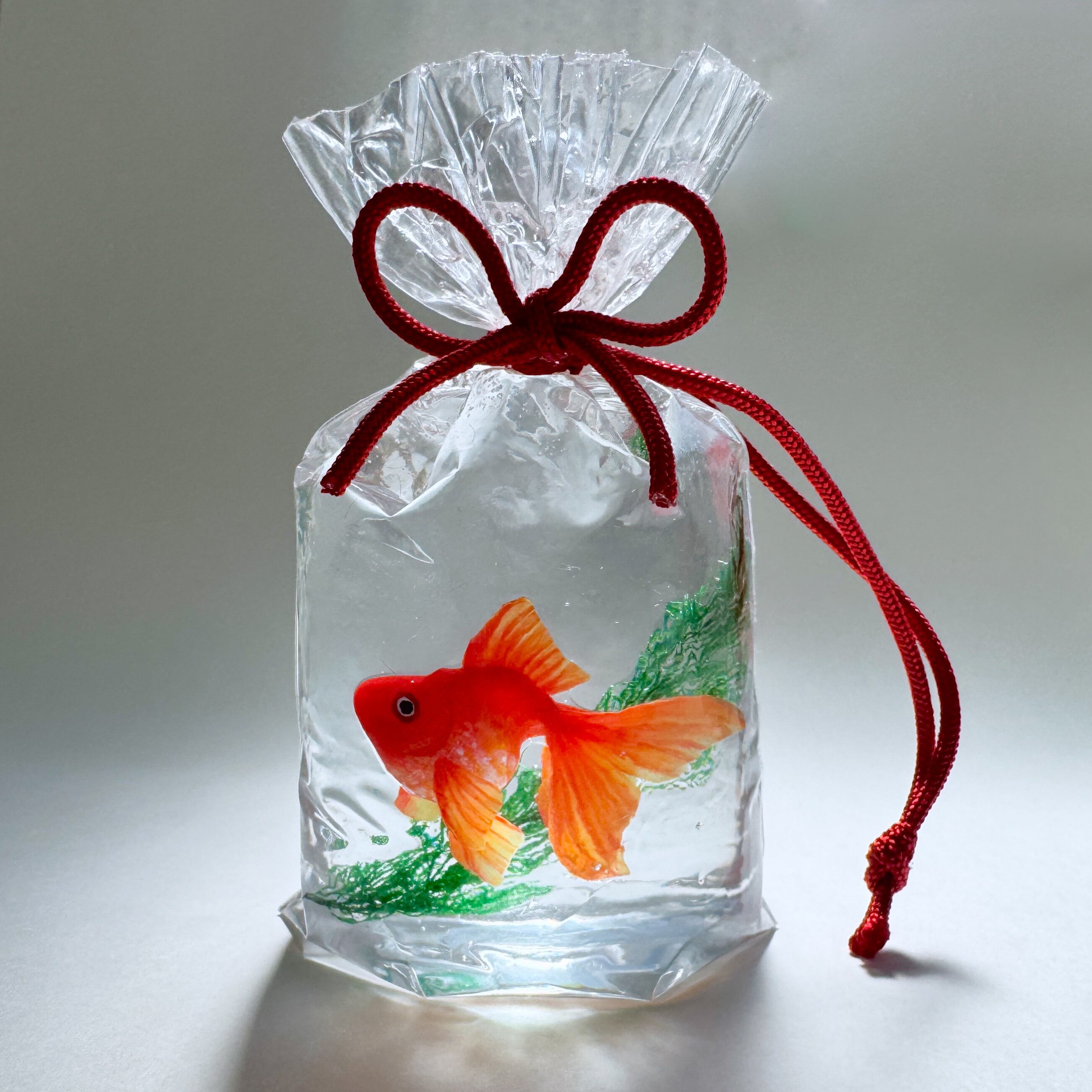 こちらは、琉金が泳ぐ金魚袋の置き飾りです。