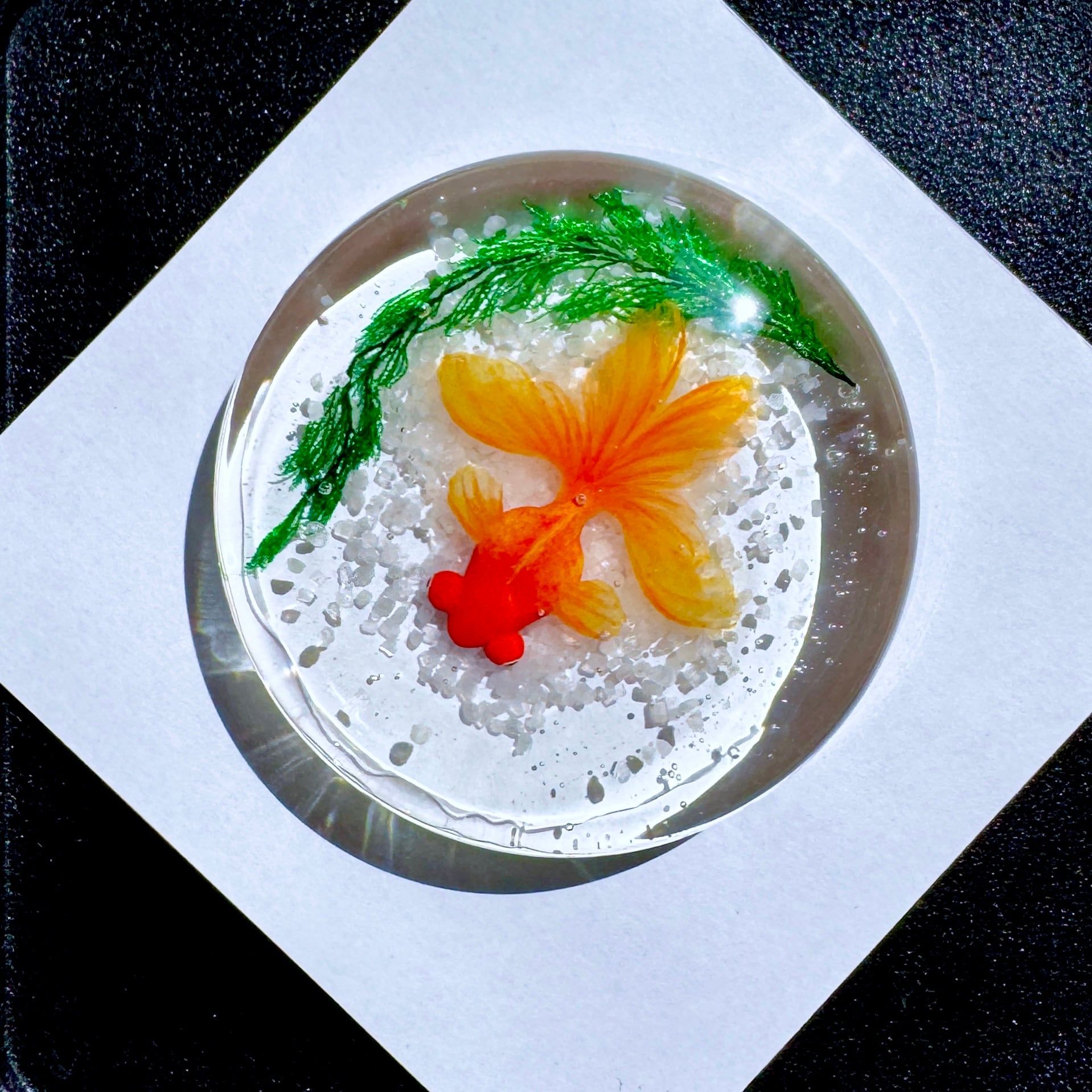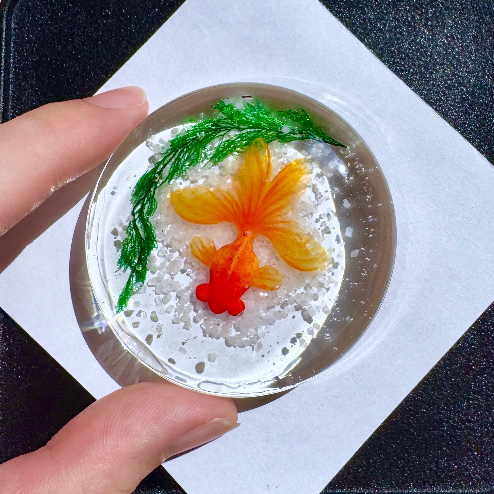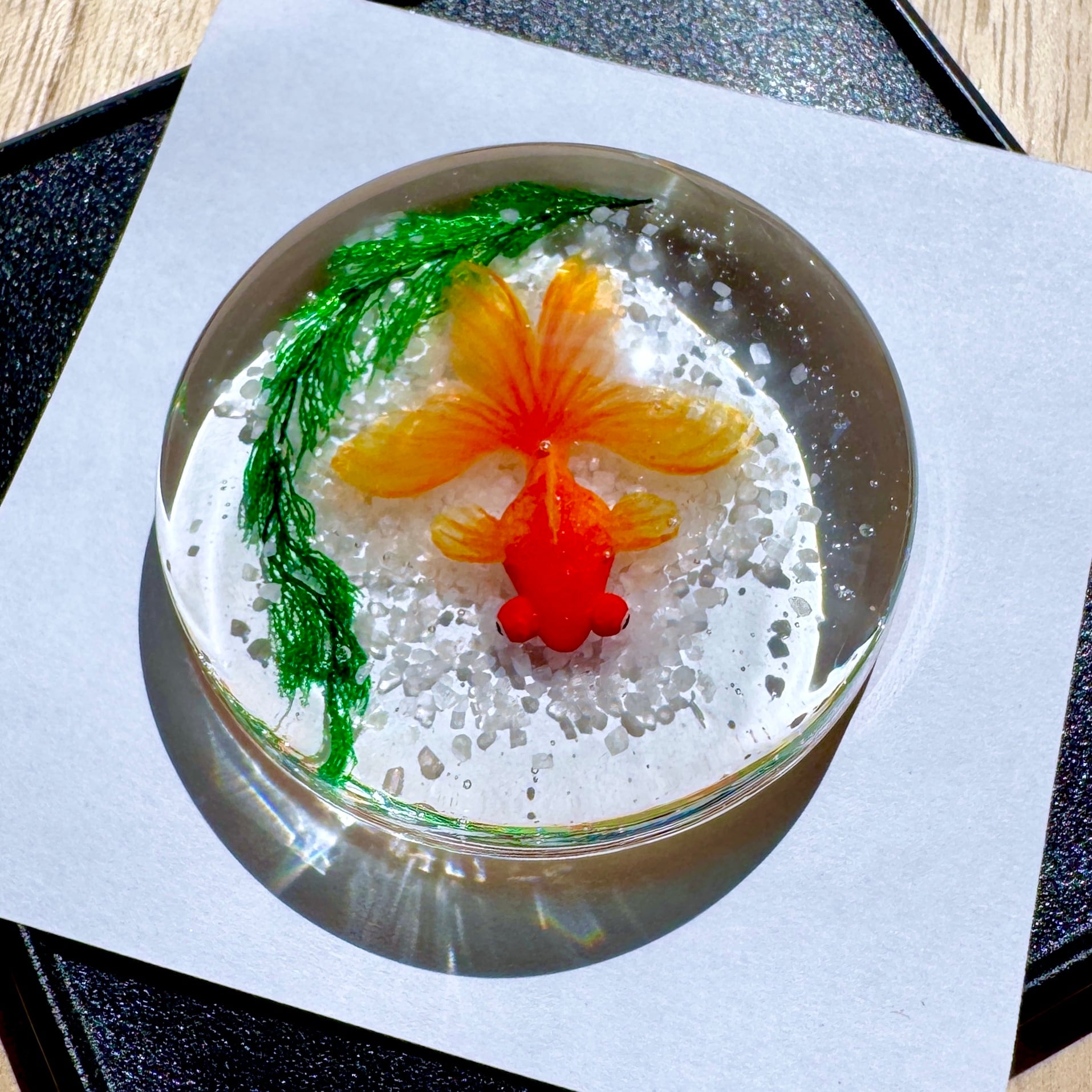 こちらは赤出目金が泳ぐペーパーウェイトです。