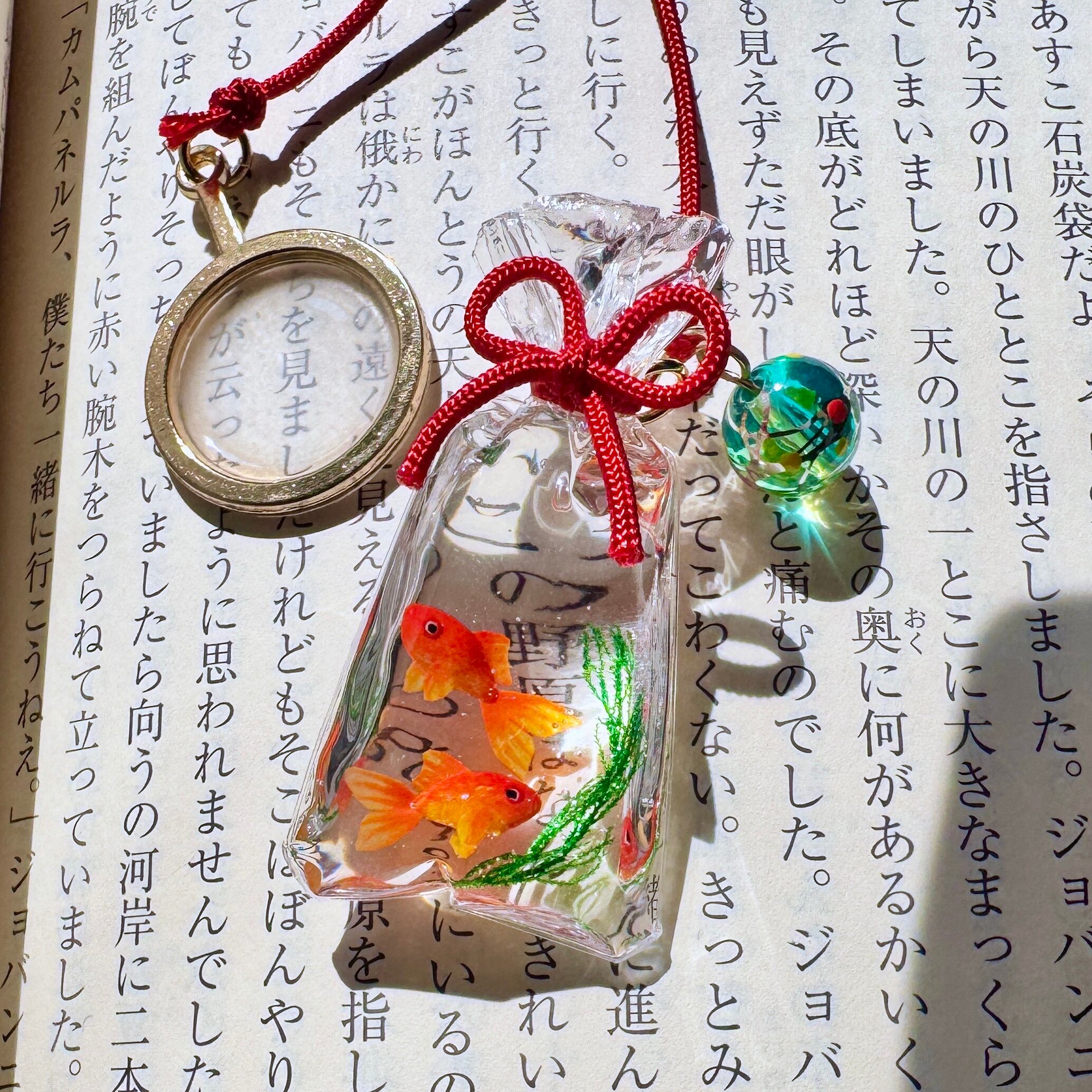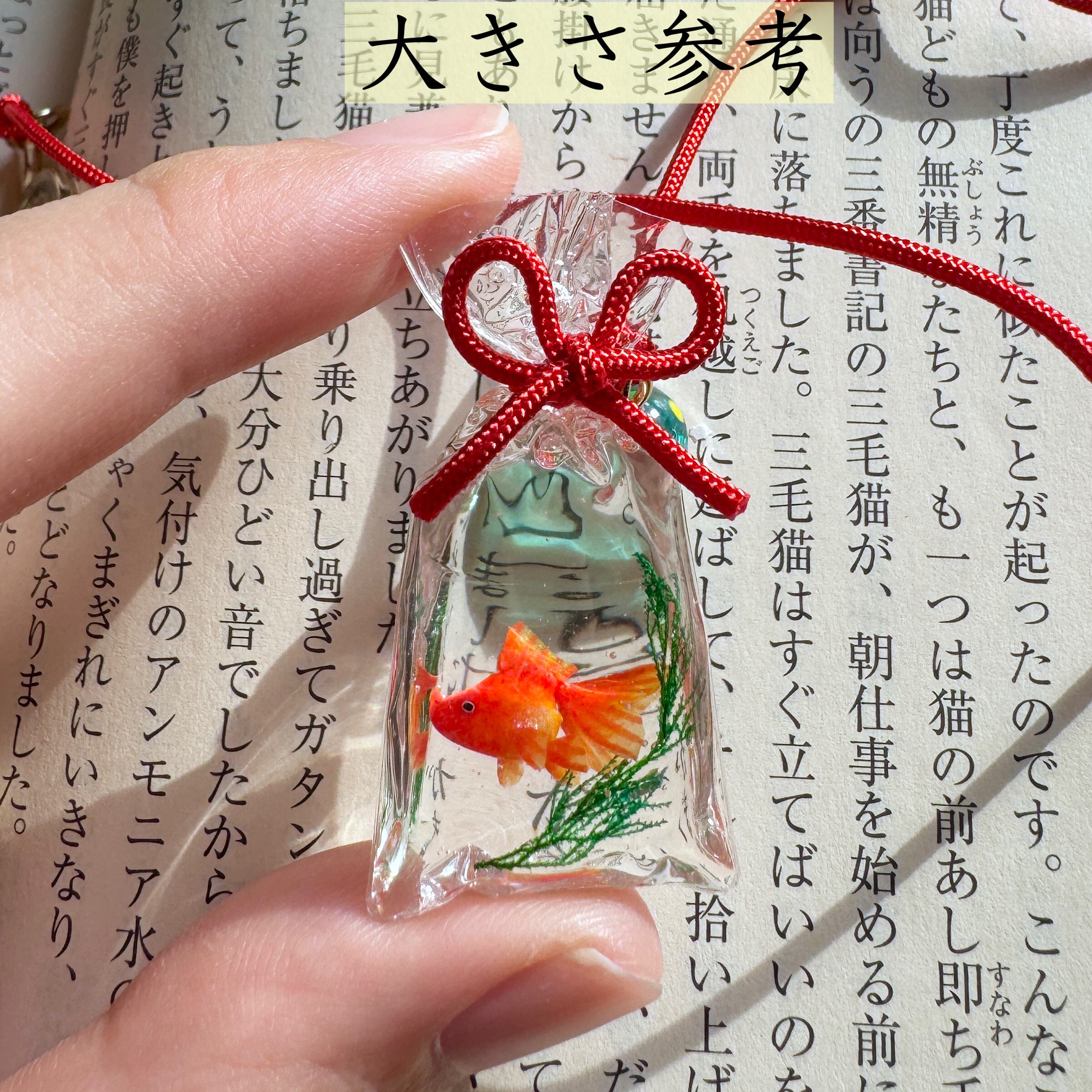 金魚も一匹ずつ型を使わずに造形し、小さな目をつけ、ヒレを描いておりますので、体の大きさやお顔や模様などお写真と若干異なります。